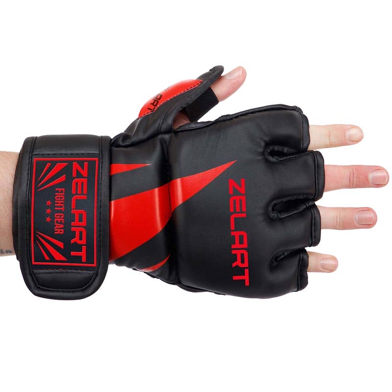 Рукавички для змішаних єдиноборств MMA L, чорний-червоний, код: BO-8355_LBKR