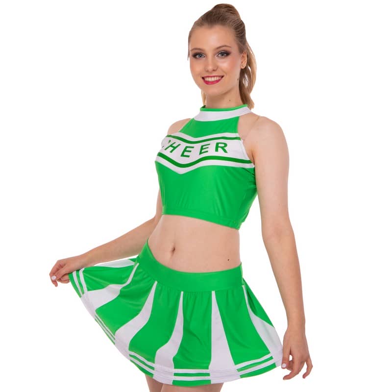 Костюм для чирлідінгу (спідниця, топ) Lidong XL (46-48), зелений-білий, код: LD-7022_XLGW