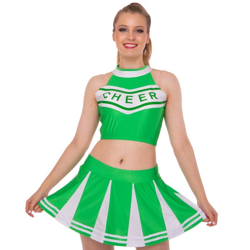 Костюм для чирлідінгу (спідниця, топ) Lidong L (44-46), зелений-білий, код: LD-7022_LGW