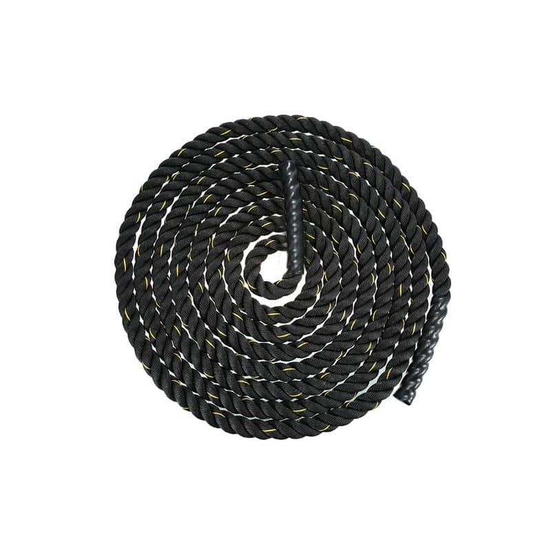 Канати EasyFit Battle Rope для кросфіту виконані у вигляді трипрядного каната з ручками з вінілу. Спеціальне покриття ручок робить хват зручним та захищає від ковзання. Висока міцність та зносостійкість обумовлена матеріалом, який використовується для їх виробництва – поліпропілену. Він не стирається і не утворює ворсу, забезпечуючи довгий термін служби.