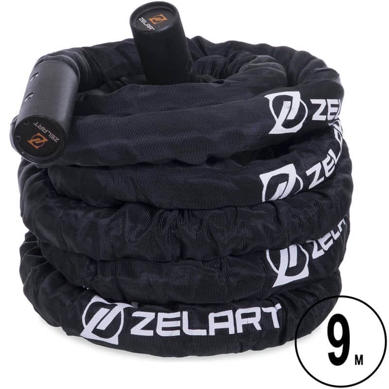 Combat Battle Rope Zelart FI-2631-12 - це професійний канат для занять кросфітом. Він відповідає найсуворішим вимогам до канатів і виготовлений з міцного синтетичного матеріалу, якому нестрашні волога і механічні пошкодження. У процесі виготовлення використовується поліетилен. Наявність захисного рукава дозволяє ще більше посилити канат і продовжити термін його служби. На краях каната є зручні ручки, які надійно закріплені за допомогою гвинтів. Рифлена поверхня ручок перешкоджає ковзанню рук і забезпечує максимально надійне захоплення під час виконання вправ. Загальна довжина каната становить 12 м.