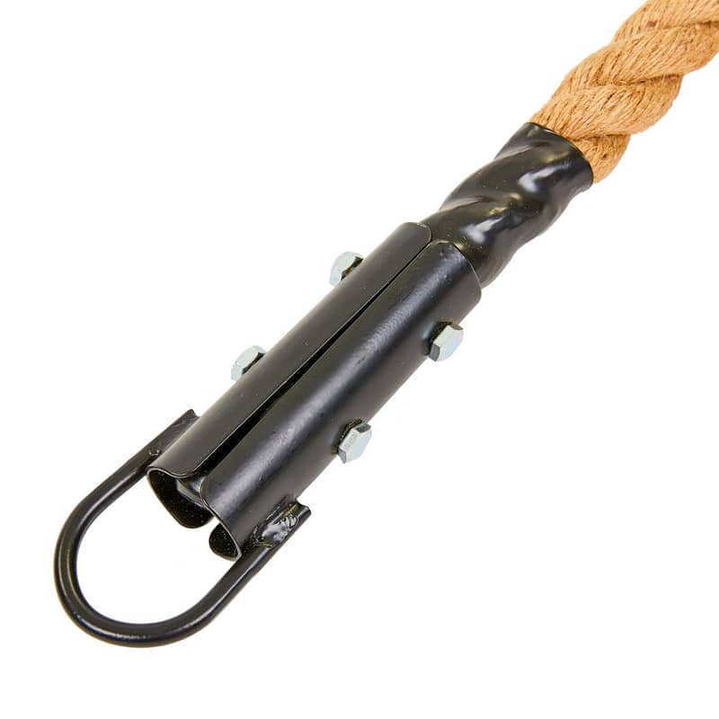 Канат із сизалю має діаметр 3,8 см, при цьому він залишається легким і дуже міцним. Загальна довжина каната становить 12 м - його можна розмістити в спортзалі з досить високими стелями. Після придбання каната вам не доведеться шукати спеціальне кріплення для нього, оскільки він уже укомплектований кріпленням. Це кріплення являє собою спеціальне кільце, яке чіпляється за металевий гак або карабін під стелею. У процесі експлуатації канат не розплітається, оскільки на його кінцях розташовані спеціальні накладки.