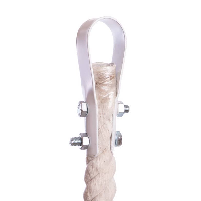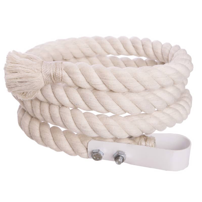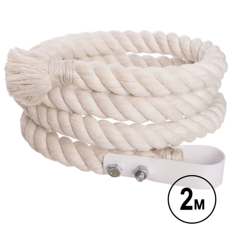 Канат довжиною 2 м відмінно підійде для установки на шведську стінку або іншу конструкцію в кімнаті дитини. На одному краю каната вже є спеціальне металеве кріплення, яке дає змогу швидко встановити його в потрібну точку. Канат із бавовни не впивається в руки і забезпечує комфортне використання. Натуральний матеріал безпечний для дитини, як би вона з ним не займалася. Заняття з канатом дають змогу дитині задіяти м'язи всього тіла, поліпшити силу хвата і зміцнити м'язи торса. При цьому таке навантаження не шкодить суглобам.
