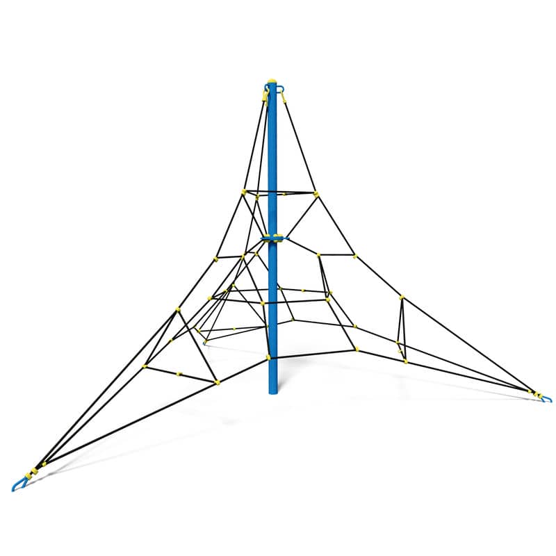 Ігровий канатний комплекс має форму піраміди, складається із металевої опори, що встановлюється методом бетонування та канатів, які натягуються на опору за допомогою спеціальних кріплень.