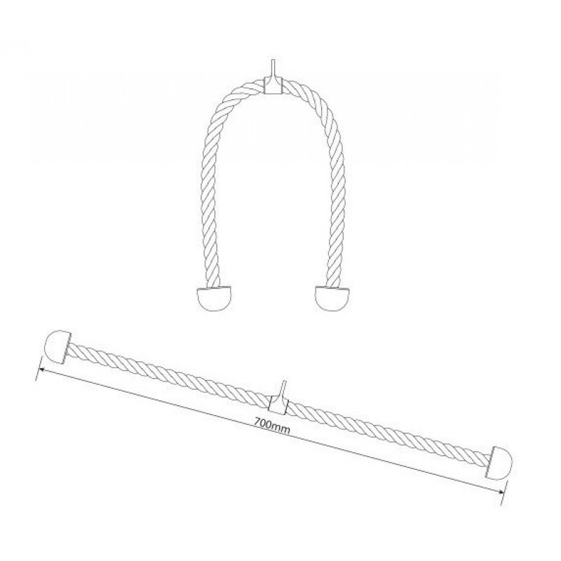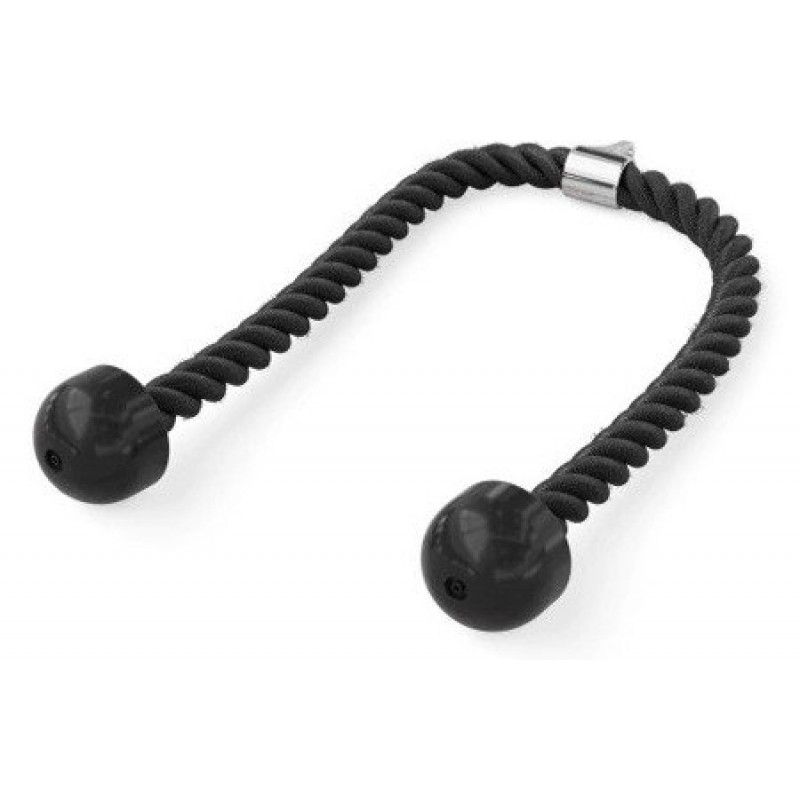 Товсте переплетення нейлонової мотузки дозволяє протягом багатьох років справді інтенсивно використовувати обладнання, навіть під час динамічних ривків під час вправ. Шнур гнучкий, але не розтягується навіть при роботі з великими навантаженнями.