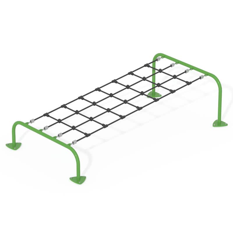 Канатний трап нагадує ліжко, по якому треба пройтися, тримаючи рівновагу. Основа трапа зроблене з канатної сітки, що надійно прикріплена до опор-ніжок.