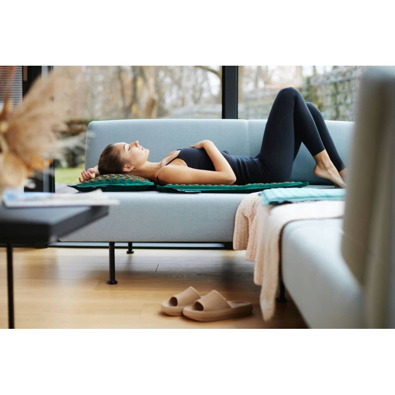 Масажний килимок з подушкою від польського бренду 4Fizjo - це інноваційний продукт, розроблений для забезпечення терапевтичного впливу на різні частини тіла за допомогою акупунктурної техніки. Основна ідея полягає в тому, щоб стимулювати активні точки на шкірі, це покращує кровообіг та розслабляє нервову систему.