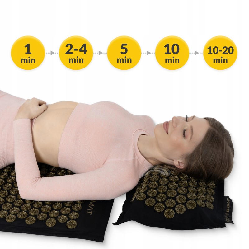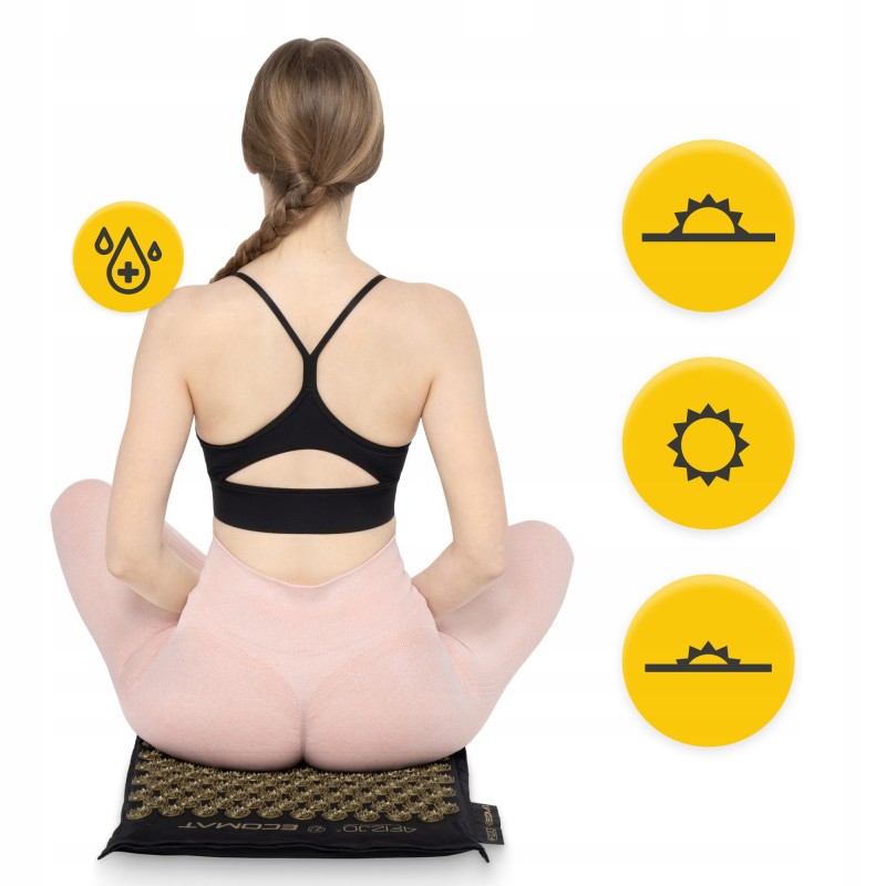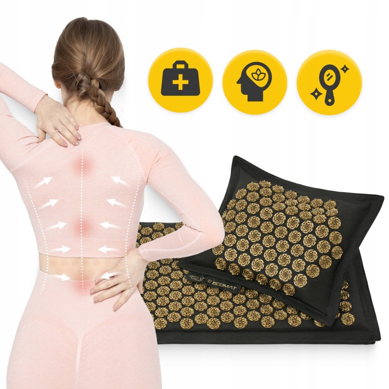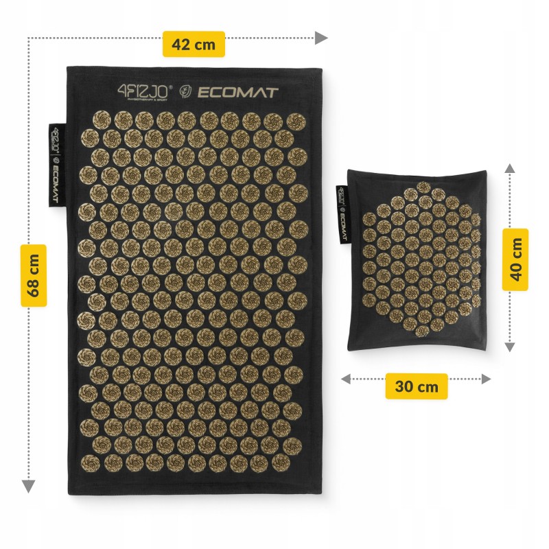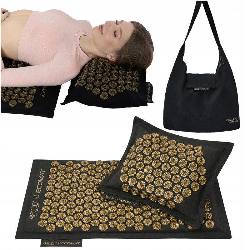 Масажний килимок з подушкою від польського бренду 4Fizjo - це інноваційний продукт, розроблений для забезпечення терапевтичного впливу на різні частини тіла за допомогою акупунктурної техніки. Основна ідея полягає в тому, щоб стимулювати активні точки на шкірі, це покращує кровообіг та розслабляє нервову систему.