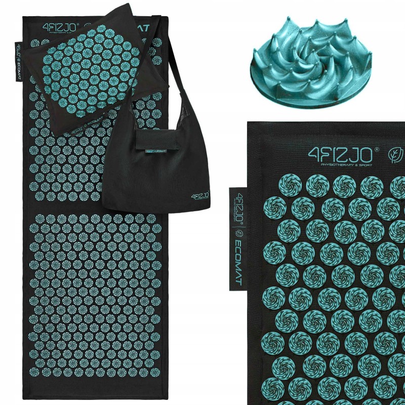 Масажний килимок з подушкою від польського бренду 4Fizjo - це інноваційний продукт, розроблений для забезпечення терапевтичного впливу на різні частини тіла за допомогою акупунктурної техніки. Основна ідея полягає в тому, щоб стимулювати активні точки на шкірі, це покращує кровообіг та розслабляє нервову систему.