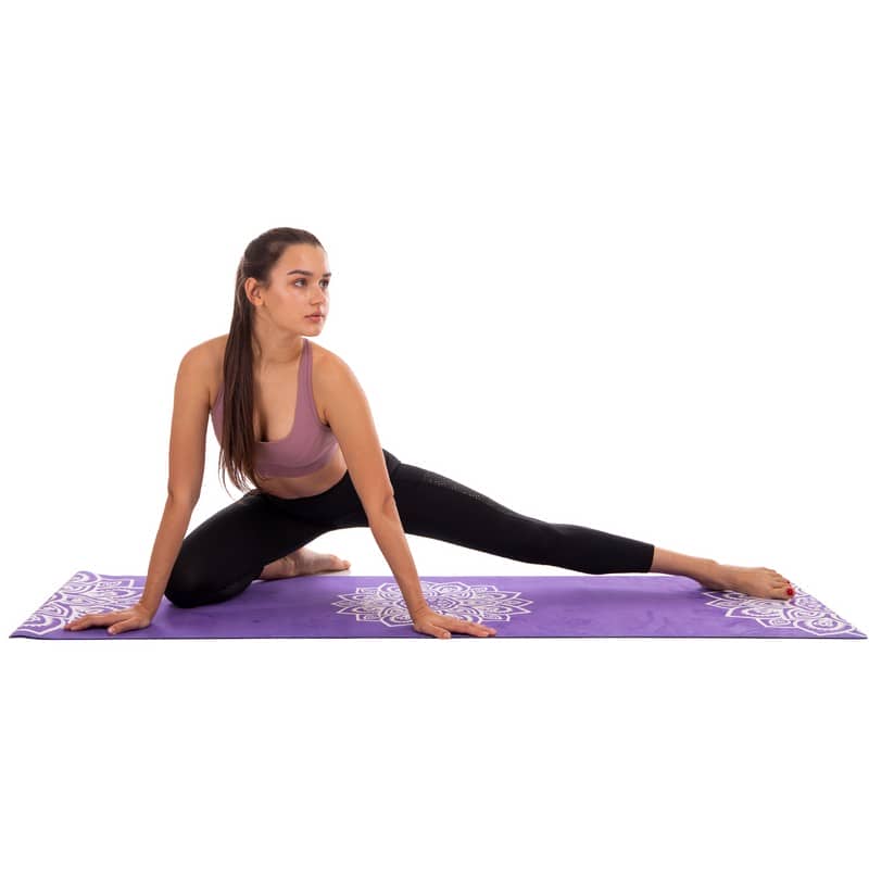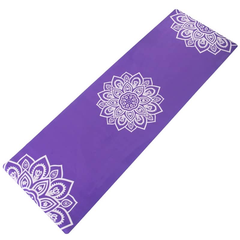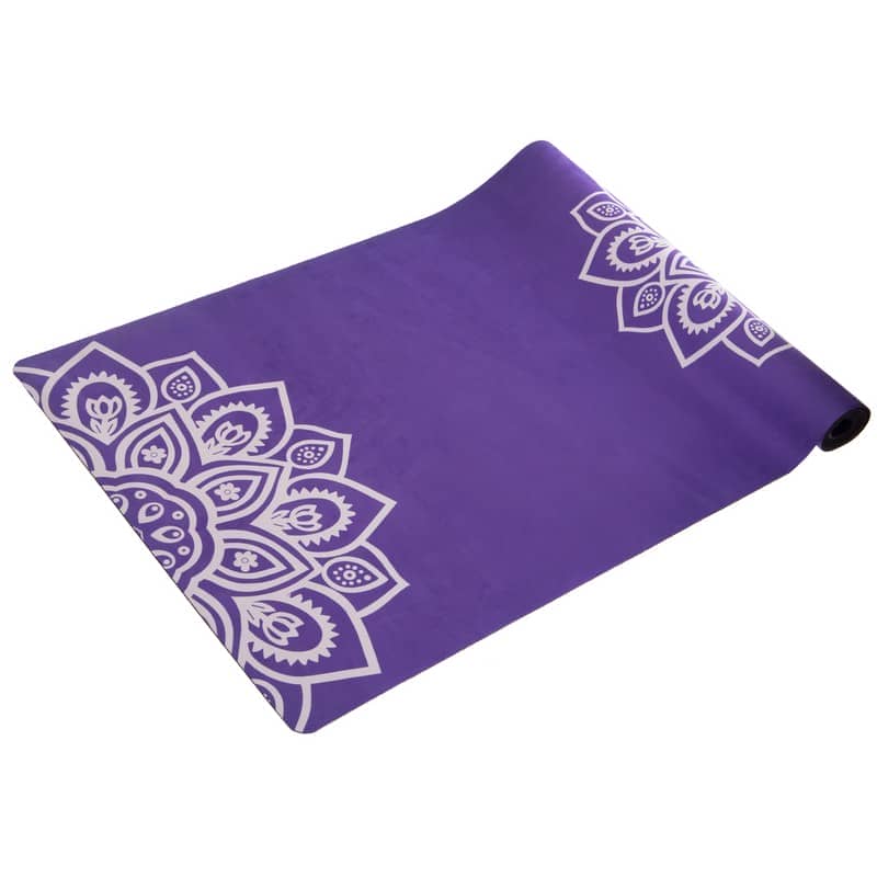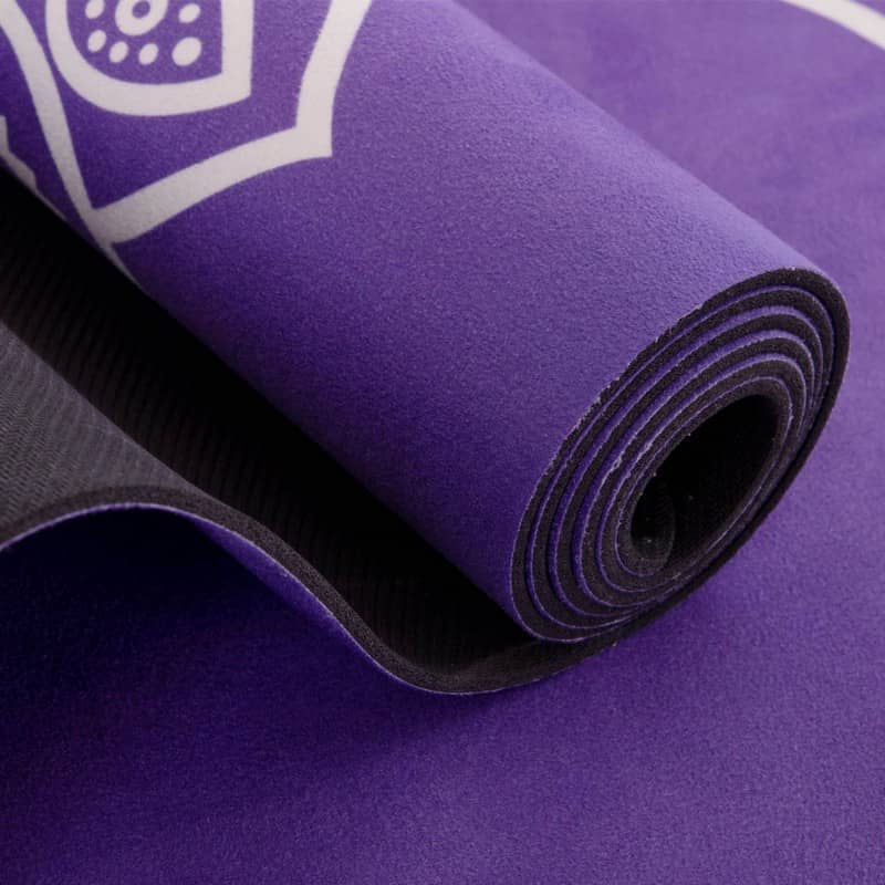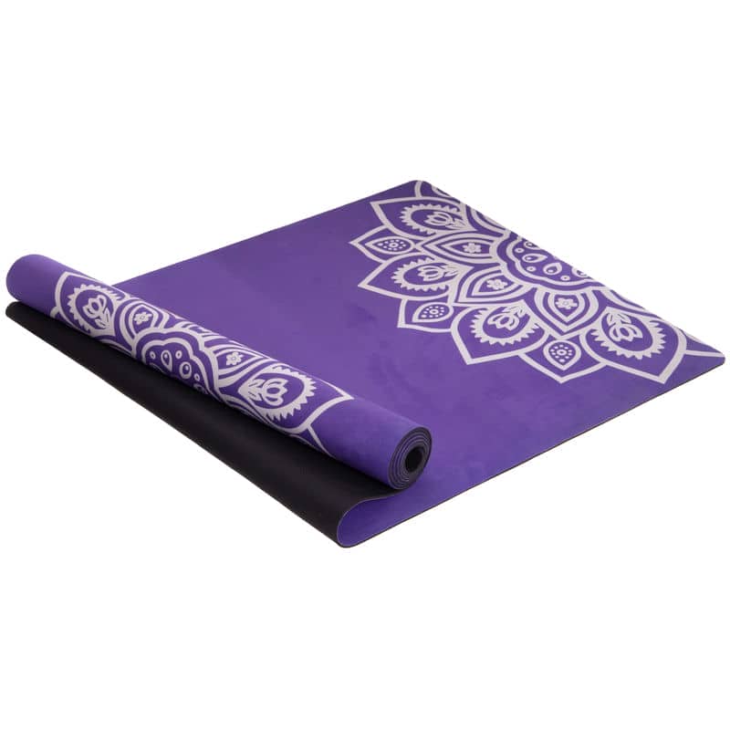 Двошаровий килимок складається з шару каучуку та шару замші. Замшевий верх має цікавий принт, який дає змогу не тільки комфортно тренуватися, а й отримувати естетичне задоволення від занять. Лицьова поверхня килимка не слизька. Відмінною липкістю володіє тильна сторона, виготовлена з каучуку. Цей матеріал добре прилипає до різних покриттів і точно не буде ковзати.