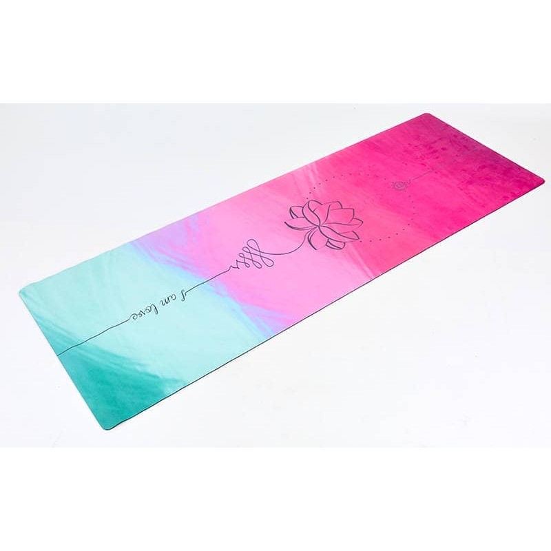 Двошаровий килимок складається з шару каучуку та шару замші. Замшевий верх має цікавий принт, який дає змогу не тільки комфортно тренуватися, а й отримувати естетичне задоволення від занять. Лицьова поверхня килимка не слизька. Відмінною липкістю володіє тильна сторона, виготовлена з каучуку. Цей матеріал добре прилипає до різних покриттів і точно не буде ковзати.