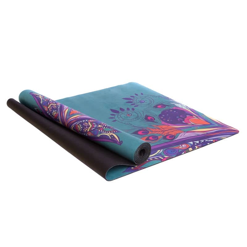 Двошаровий килимок складається з шару каучуку та шару замші. Замшевий верх має цікавий принт, який дає змогу не тільки комфортно тренуватися, а й отримувати естетичне задоволення від занять. Лицьова поверхня килимка не слизька. Відмінною липкістю володіє тильна сторона, виготовлена з каучуку. Цей матеріал добре прилипає до різних покриттів і точно не буде ковзати.