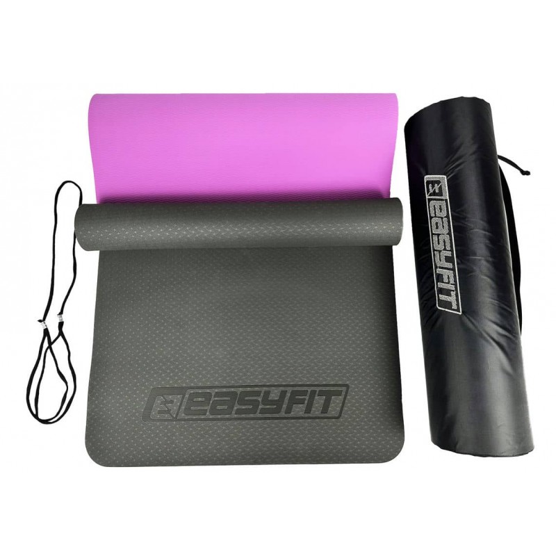 Килимок для йоги та фітнеса двошаровий + чохол EasyFit TPE+TC 1830x610x6мм, чорний з фіолетовим, код: EF-1924s-BV-EF