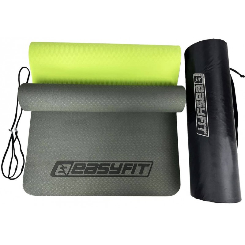 Килимок для йоги та фітнеса двошаровий + чохол EasyFit TPE+TC 1830x610x6мм, чорний з зеленим, код: EF-1924s-BG-EF