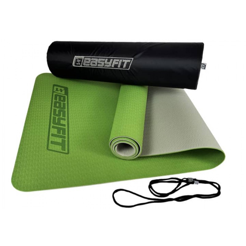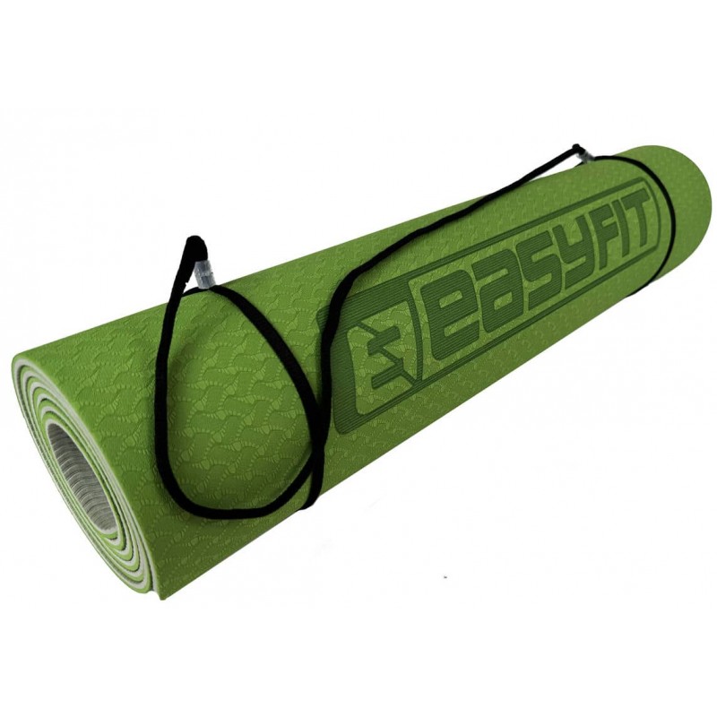 Килимок для йоги та фітнеса двошаровий + чохол EasyFit TPE+TC 1830x610x6мм, зелений з сірим, код: EF-1924s-GNGY-EF