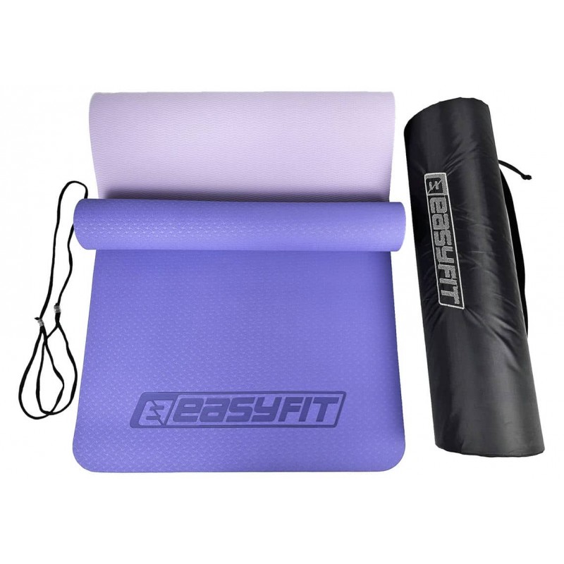 Килимок для йоги та фітнеса двошаровий EasyFit TPE+TC 1830х610х6мм + Чохол бузковий з св.бузковим, код: EF-1924s-VV-EF