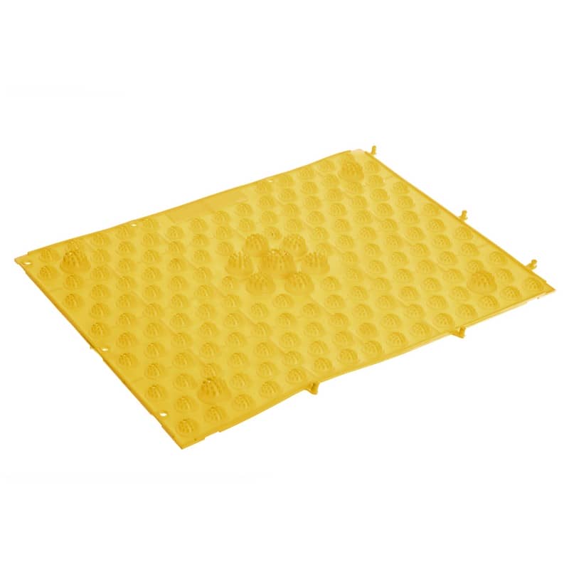 Відмінна риса даної моделі – сегментоване покриття. Тобто малюнок на поверхні неоднорідний, а значить, на стопи виявляється різна дія, що підвищує ефективність занять. Він виготовлений з гуми – матеріалу, який не стирається і довго служить, а також – гігієнічний та легко миється. Більші виступи створюють враження ходьби галькою, дрібні горбики активно стимулюють стопу і сприяють м'язовому розслабленню. Яскравий життєрадісний колір виробу додатково подарує естетичну насолоду.