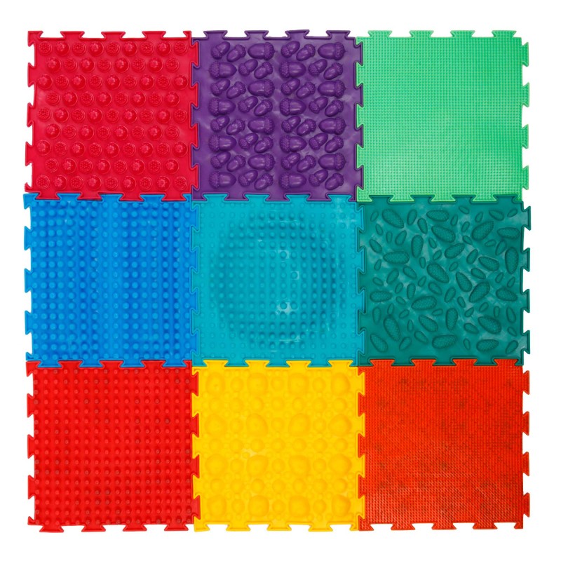 Килимок пазл масажний "Асорті" призначений для забезпечення комфорту і безпеки. Його можна використовувати в якості підлогового покриття дитячої кімнати, організувати зону ігор, відпочинку або занять спортом. Модульна система спрощує зберігання килимка, в разі пошкоджень, кожен фрагмент можна прибрати або замінити. Універсальна система зачепа дає змогу комбінувати килимок з іншими подібними наборами.