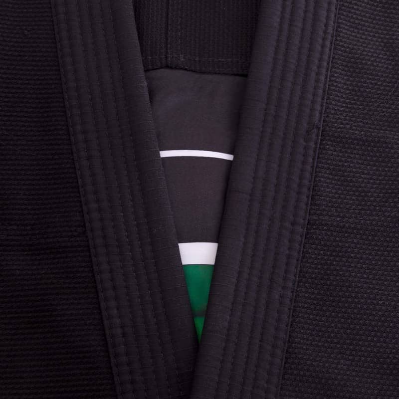 Комір куртки потовщений і багаторазово прошитий. Завдяки такій конструкції він менше тисне на шию під час поєдинку. Збільшена товщина коміра також заважає противнику провести якісне захоплення.