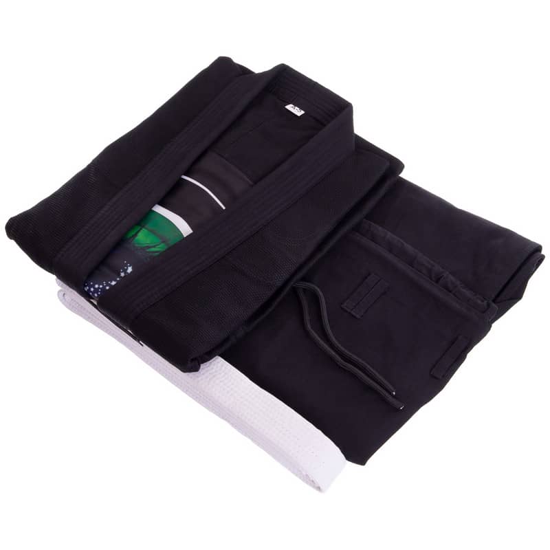 Тканина, з якої пошито кімоно, являє собою бавовняне полотно одинарного плетіння що дихає. Подвійний рядок забезпечує посилення в місцях, що зазнають навантаження (плечі, лікті, манжети). Це робить кімоно легким варіантом для тренувань без ризику для довговічності.