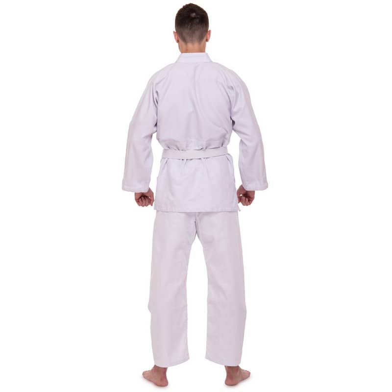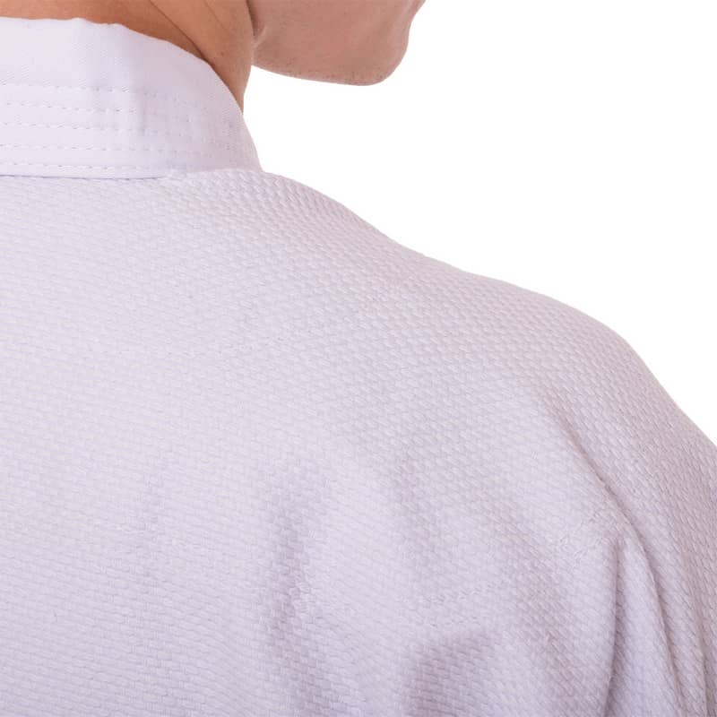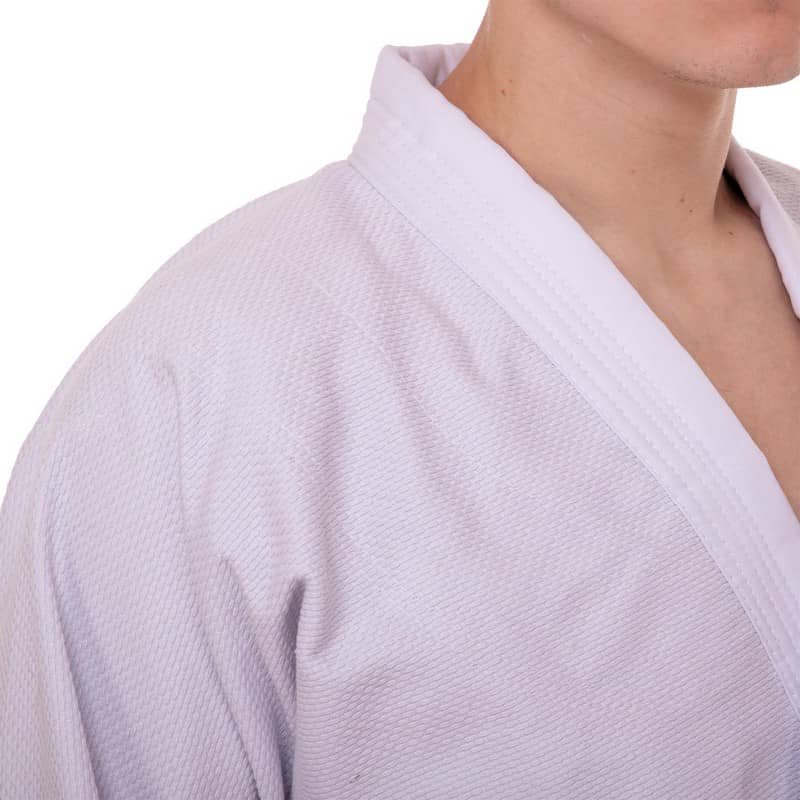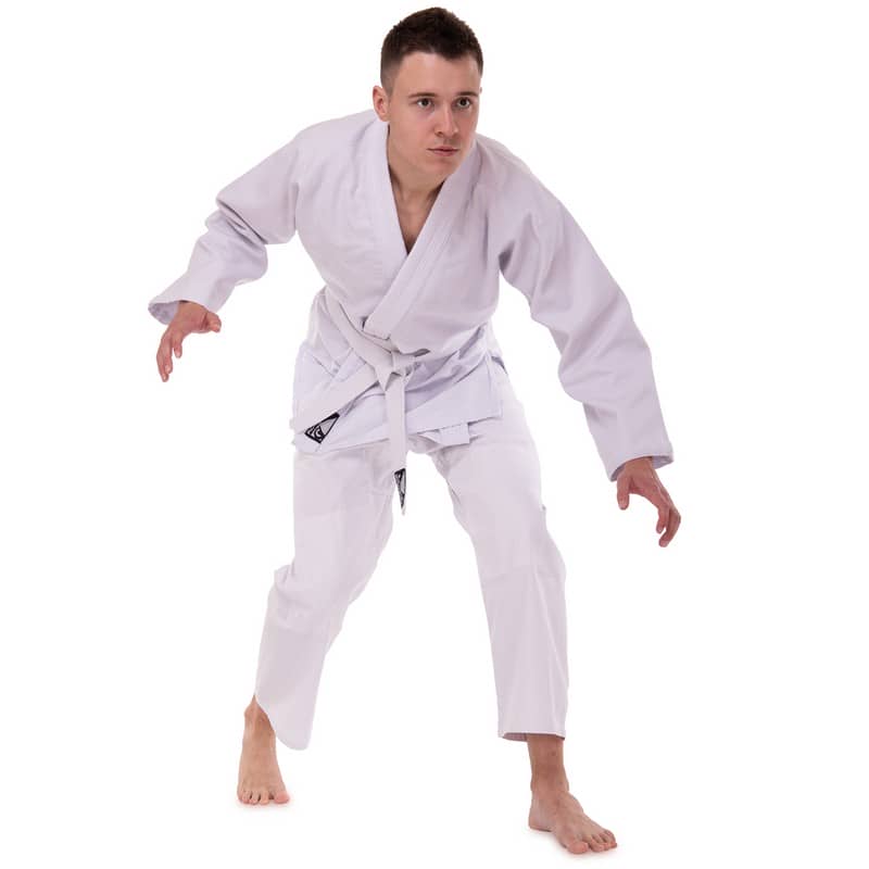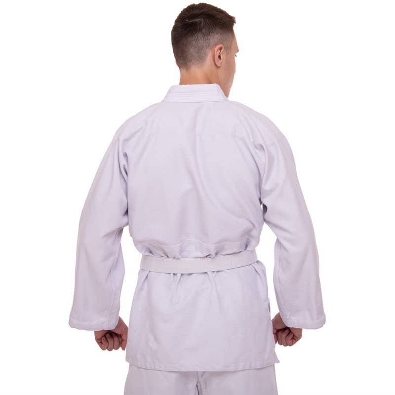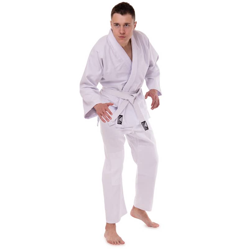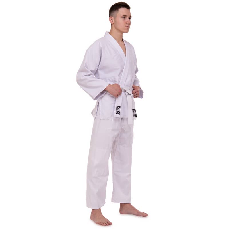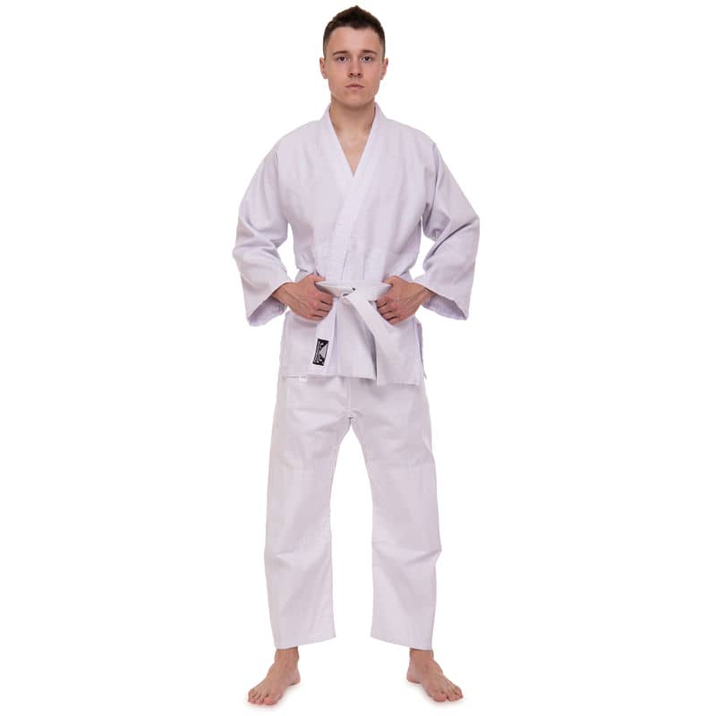 Форма складається з куртки-кімоно та штанів. Також до комплекту входить пояс, який, як і форма, виконаний з натуральної бавовняної тканини білого кольору та призначений для учнів початкового рівня.