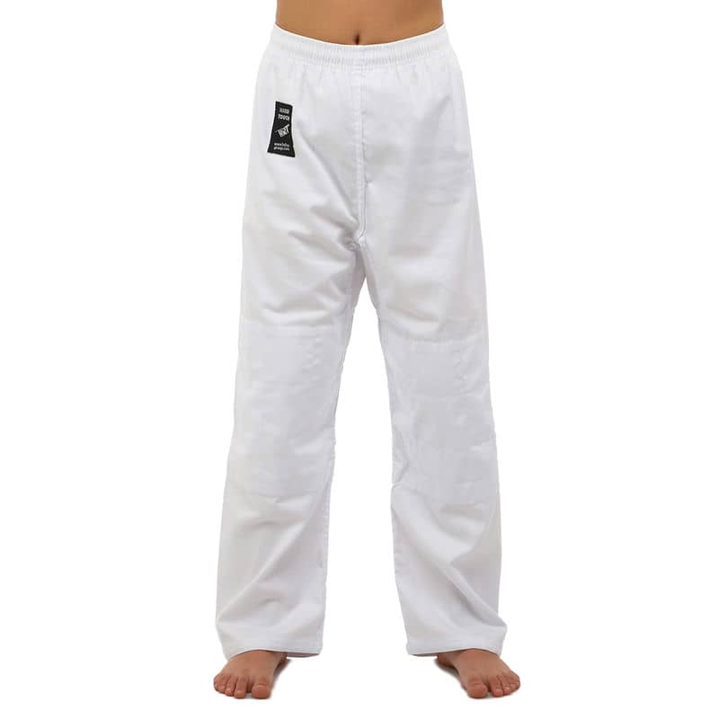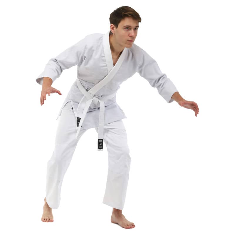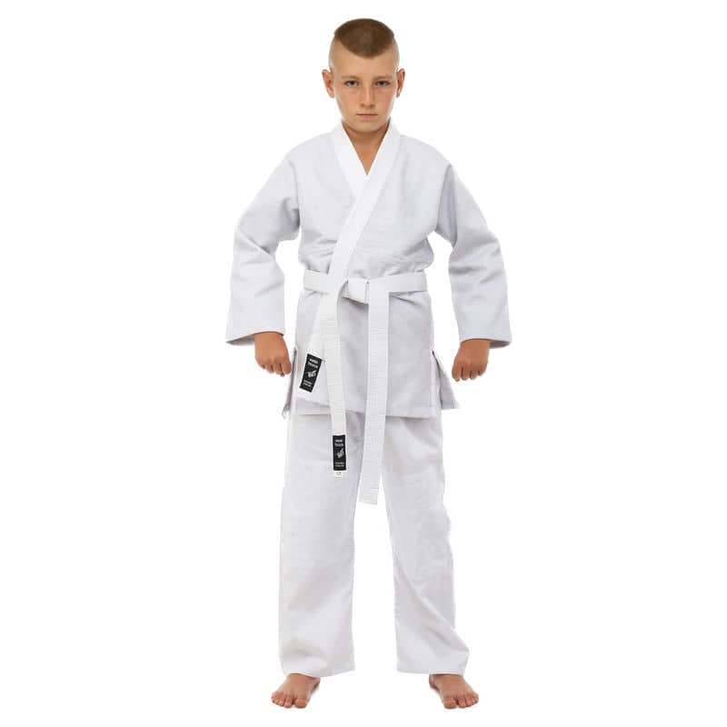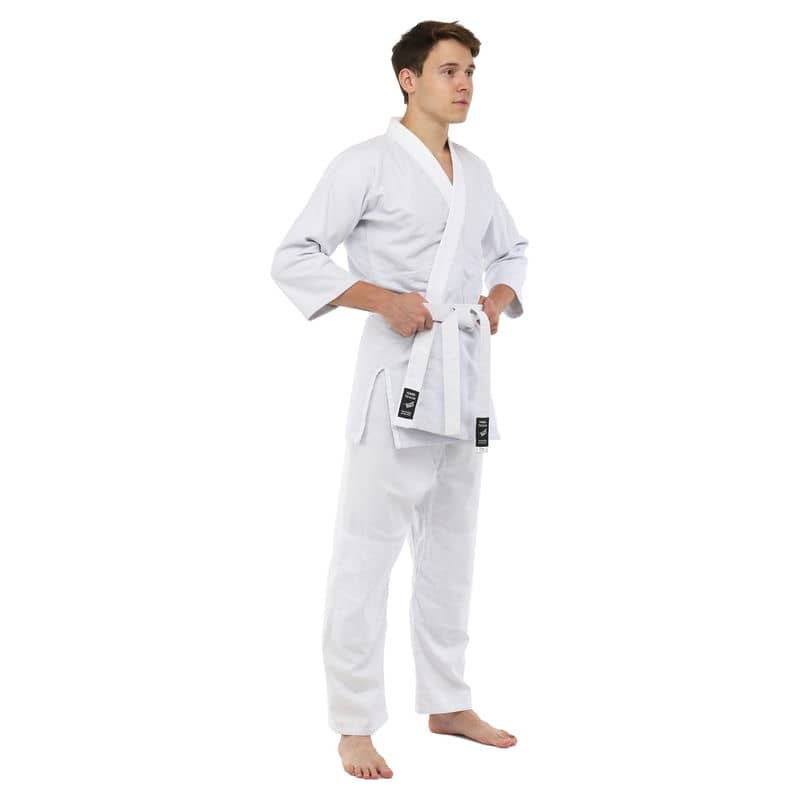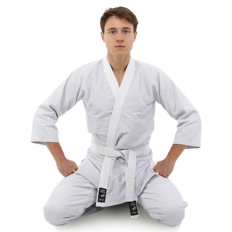 Для виготовлення кімоно використовується натуральне бавовняне волокно – з нього виготовляють тканину особливого плетіння. Вона відрізняється високою стійкістю до деформації на розрив. Посилений відворот кімоно і вставки під рукавами підвищують запас міцності.