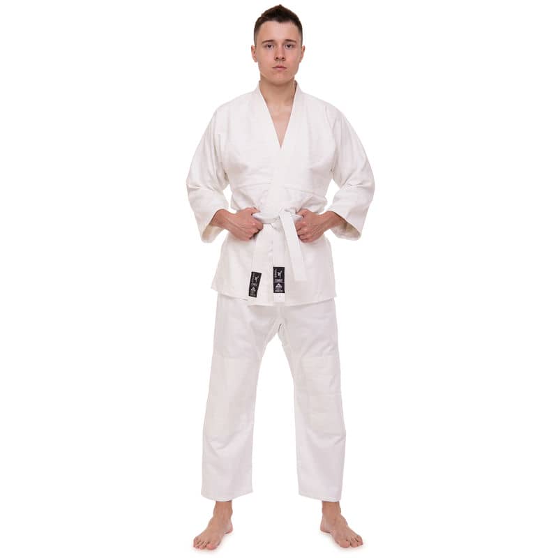 Форма складається з куртки-кімоно та штанів. Також до комплекту входить пояс, який, як і форма, виконаний з натуральної бавовняної тканини білого кольору та призначений для учнів початкового рівня.