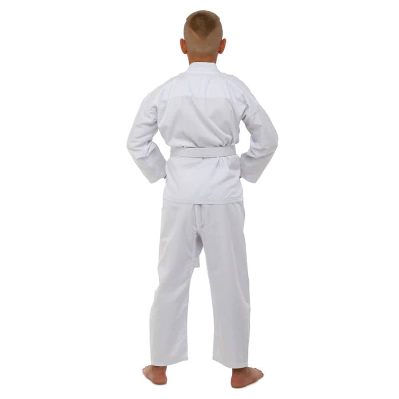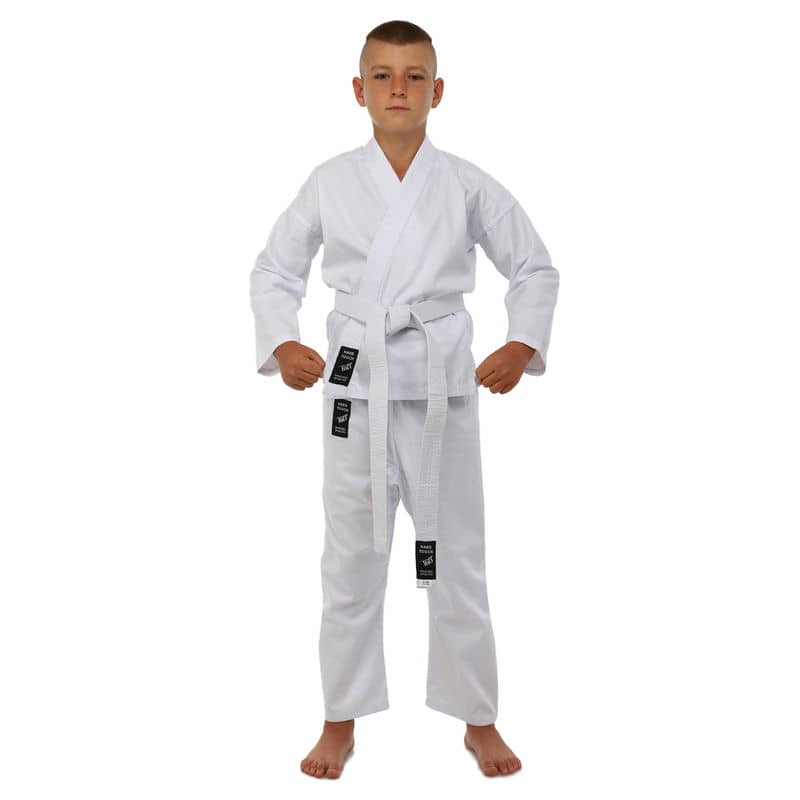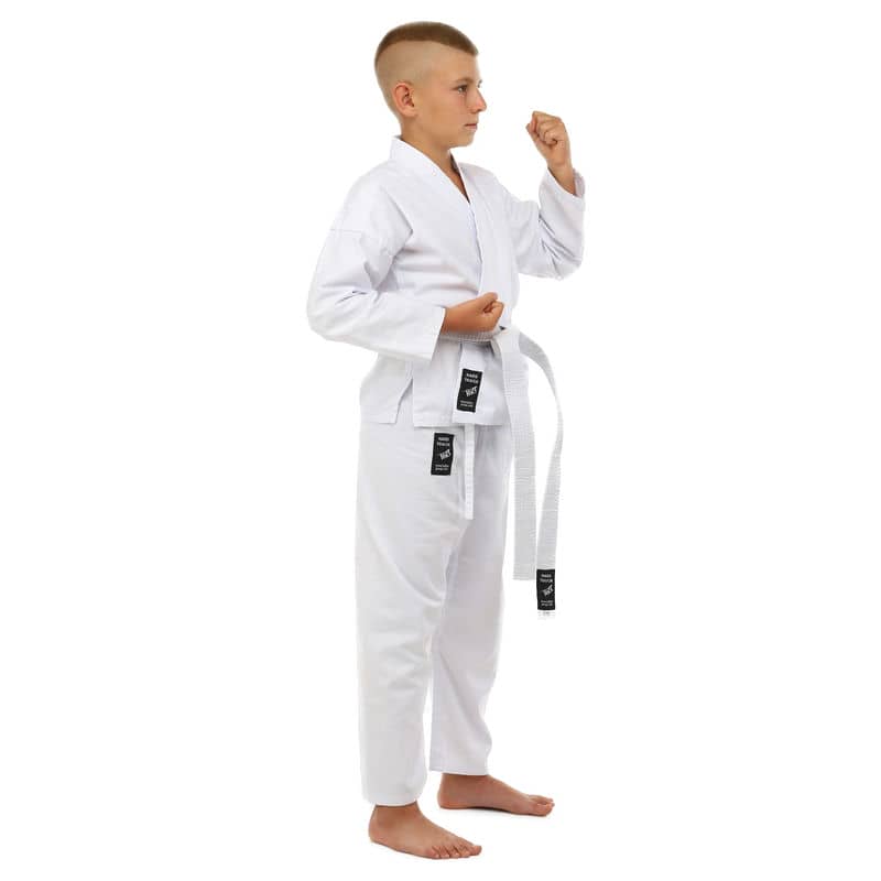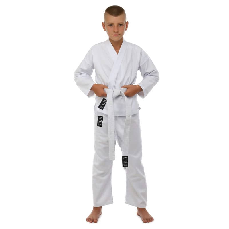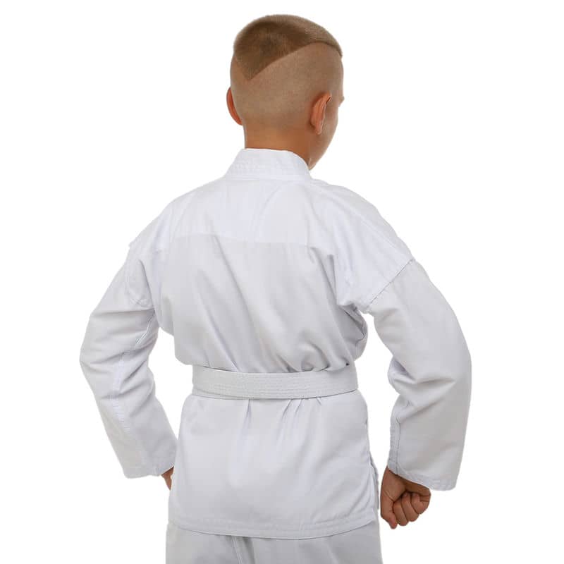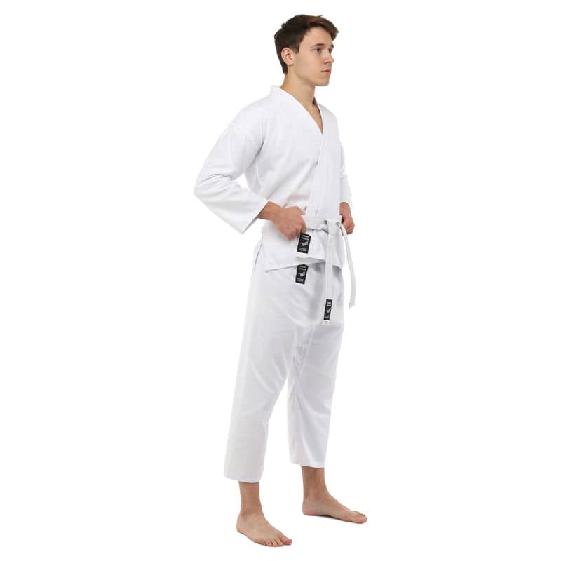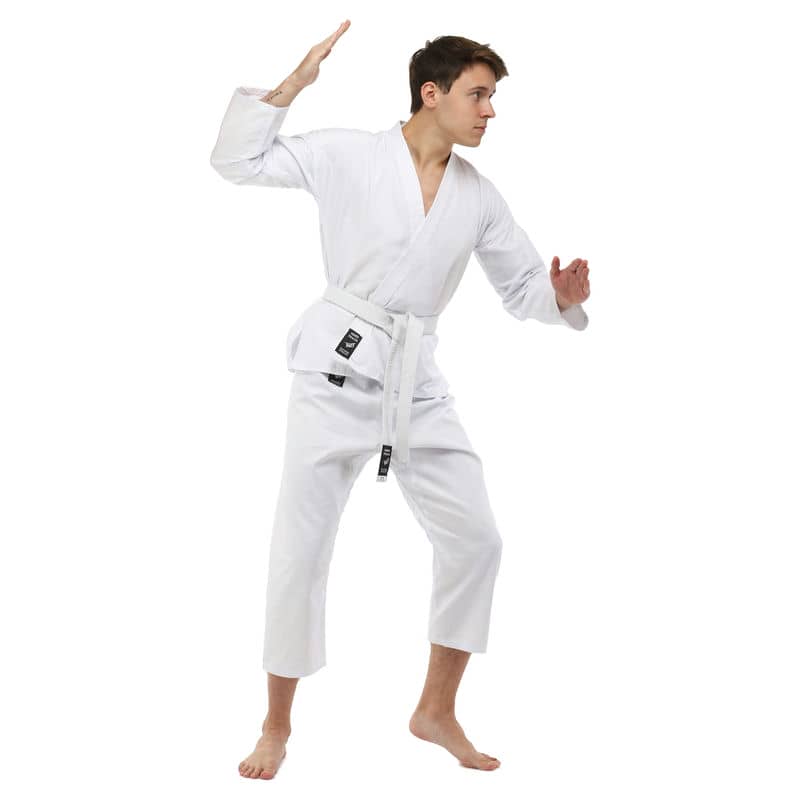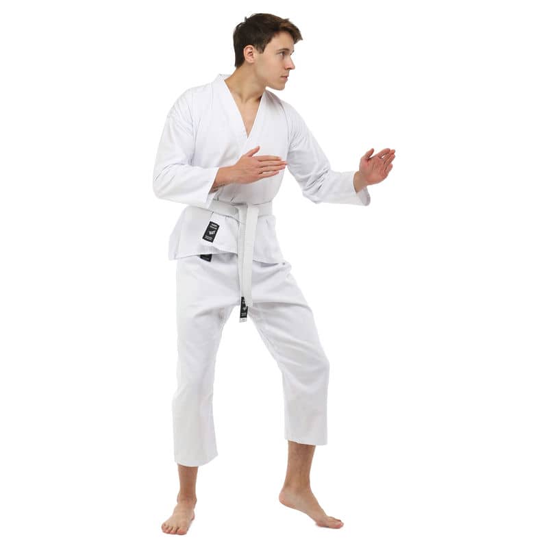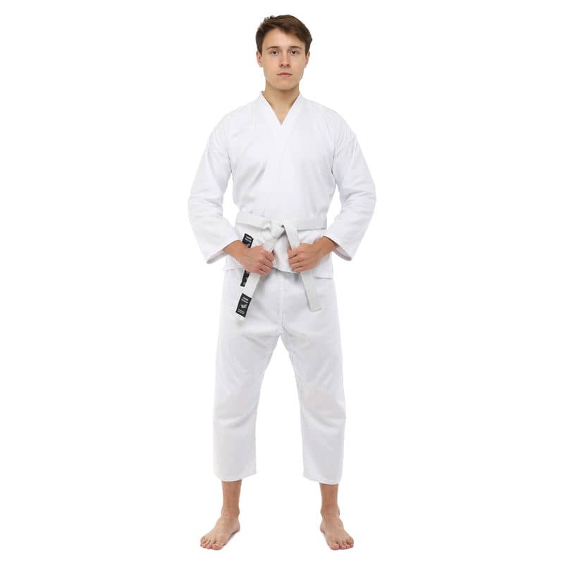 Для виготовлення кімоно використовується натуральне бавовняне волокно – з нього виготовляють тканину особливого плетіння. Вона відрізняється високою стійкістю до деформації на розрив. Посилений відворот кімоно і вставки під рукавами підвищують запас міцності.
