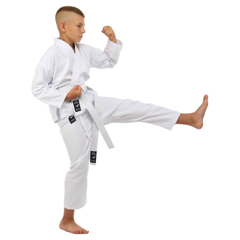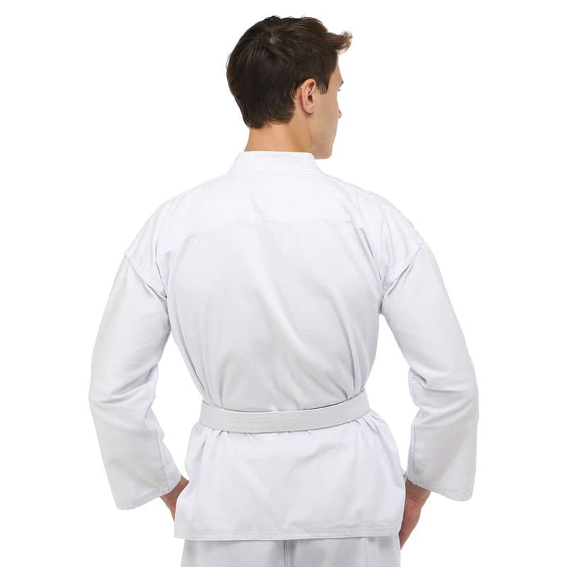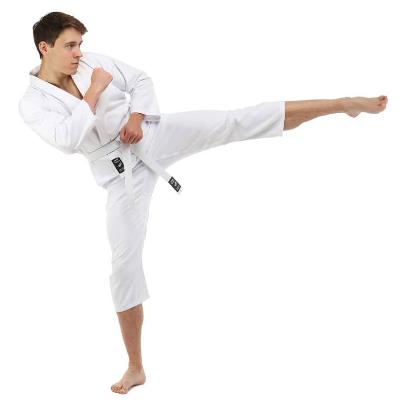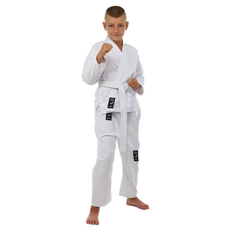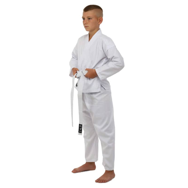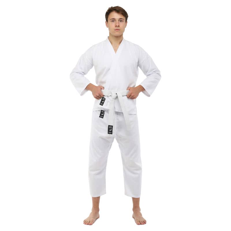 Для виготовлення кімоно використовується натуральне бавовняне волокно – з нього виготовляють тканину особливого плетіння. Вона відрізняється високою стійкістю до деформації на розрив. Посилений відворот кімоно і вставки під рукавами підвищують запас міцності.