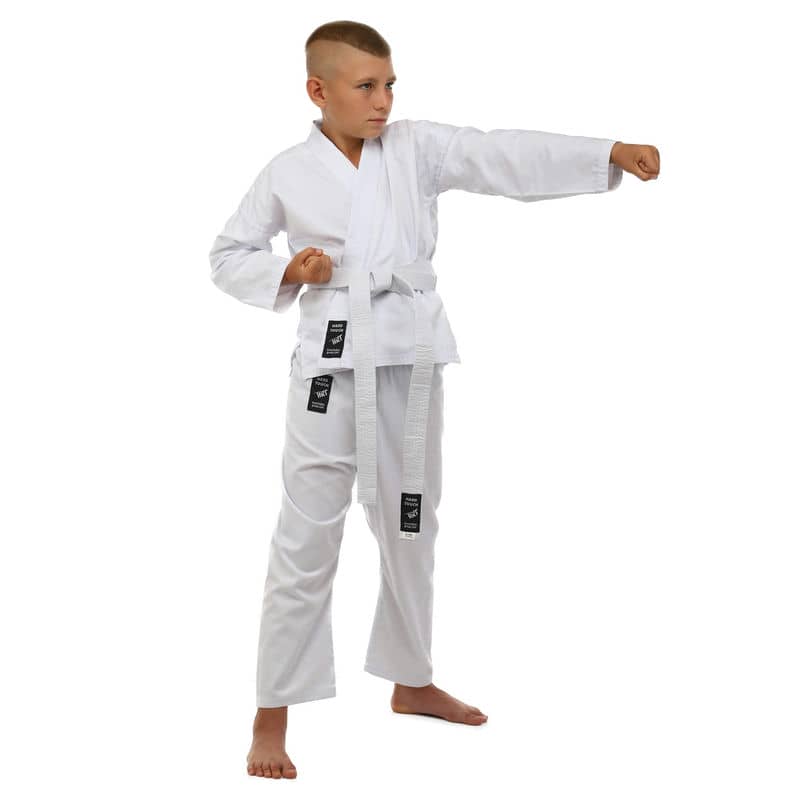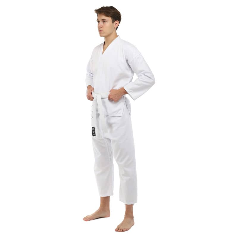 Для виготовлення кімоно використовується натуральне бавовняне волокно – з нього виготовляють тканину особливого плетіння. Вона відрізняється високою стійкістю до деформації на розрив. Посилений відворот кімоно і вставки під рукавами підвищують запас міцності.