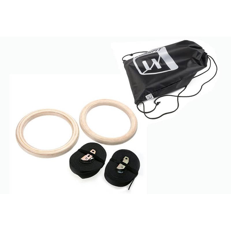 Кільця виконані з міцного дерева зі стандартним для кросфіту та гімнастики діаметром обода 23.5 см. Обод кільця зроблений багатошаровим і є цілісною конструкцією без швів і стиків. Таке виконання робить вправи на гімнастичних кільцях безпечнішими, оскільки завдяки багатошаровій структурі значно підвищується міцність виробу, що унеможливлює розтріскування обода кілець у моменти динамічних навантажень при різких виходах і ривках вниз. Виготовлення кілець для кросфіту з дерева також робить їх більш комфортними, за рахунок зручного хвату та зниження больових відчуттів (натирання або зісковзування рук). Нейлонові регульовані стрічки (стропи, ремені) оснащені зручними сталевими кріпленнями, що дозволяє закріпити кільця для кросфіту на будь-якій поперечині та швидко регулювати довжину строп. Поєднавши прості тренування з комплексами вправ на гімнастичних кільцях, можливо отримати ідеальний набір ефективних тренувань для опрацювання всіх груп м'язів, гнучкості та координації. Усі тренування будуть спрямовані на розвиток витривалості та м'язового контролю за рахунок необхідності стабілізувати тіло в одному положенні, активну роботу м'язів-стабілізаторів. Даний тренажер використовується спортсменами всього світу, які займаються кросфітом та гімнастикою, а також багатьма видами важкої атлетики не тільки як тренувальний обладнання, але і як снаряд на змаганнях.