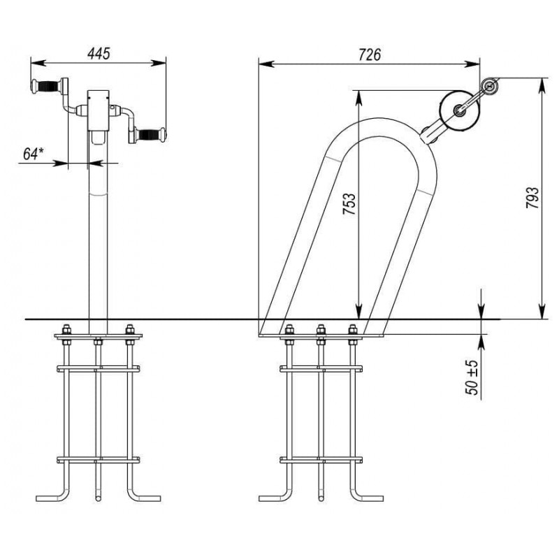 - До металевого каркасу на рівні, зручному для користування, приварений елемент коловороту: складається з невеликого кола, яке обертається навколо своєї осі з рахунок крутіння поручнів.