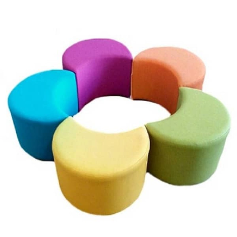 Комплект дитячих пуфів Веселка складається з 5 різнокольорових пуфів. Модульний комплект Веселка забезпечить комфорт, а також стане функціональною окрасою будь-якого приміщення. Невелика вага пуфів дозволяє дітям самостійно їх пересувати. Відсутність гострих, твердих кутів забезпечує безпеку малюків під час гри.