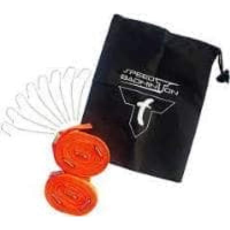 Завдяки корту Talbot-Torro Court Lines ви з легкістю сформуєте професійний майданчик для гри у швидкісний бадмінтон, що складається з двох квадратів (5,5 x 5,5 метрів), металевих петель на кожному розі та 8 кілочків для кріплення.