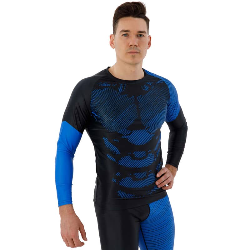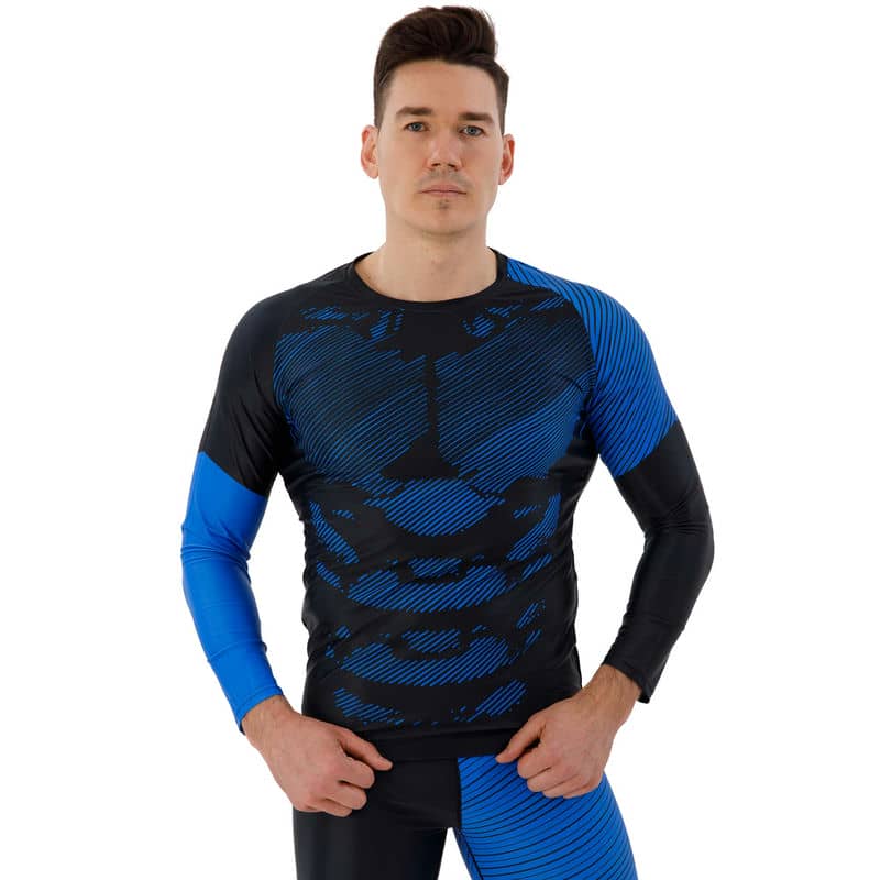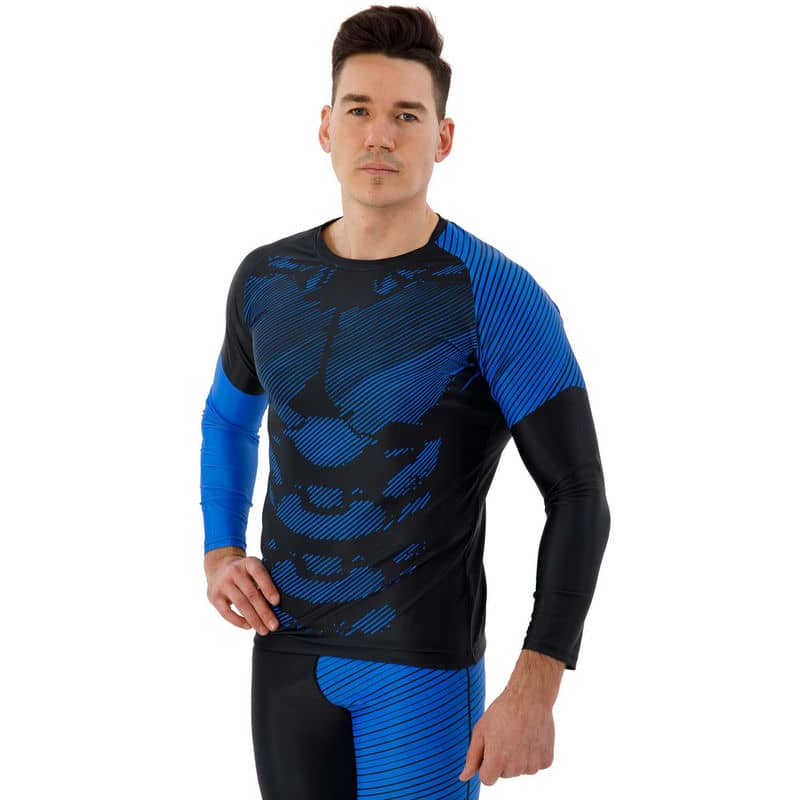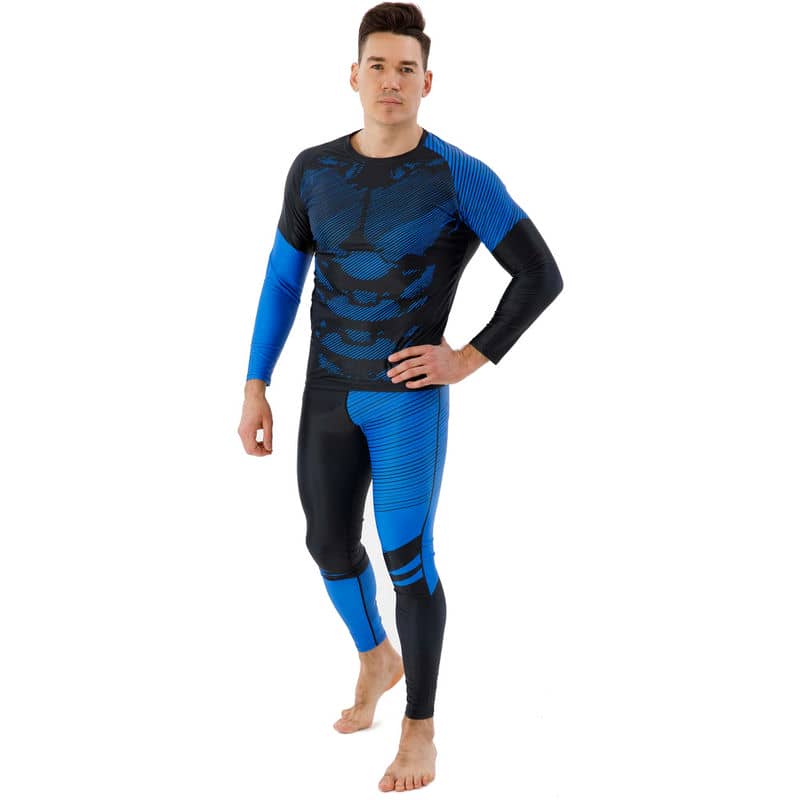 Костюм компресійний чоловічий рашгард лонгслів та штани Domino M, чорний-синій, код: TC210-KC210-3_MBKBL