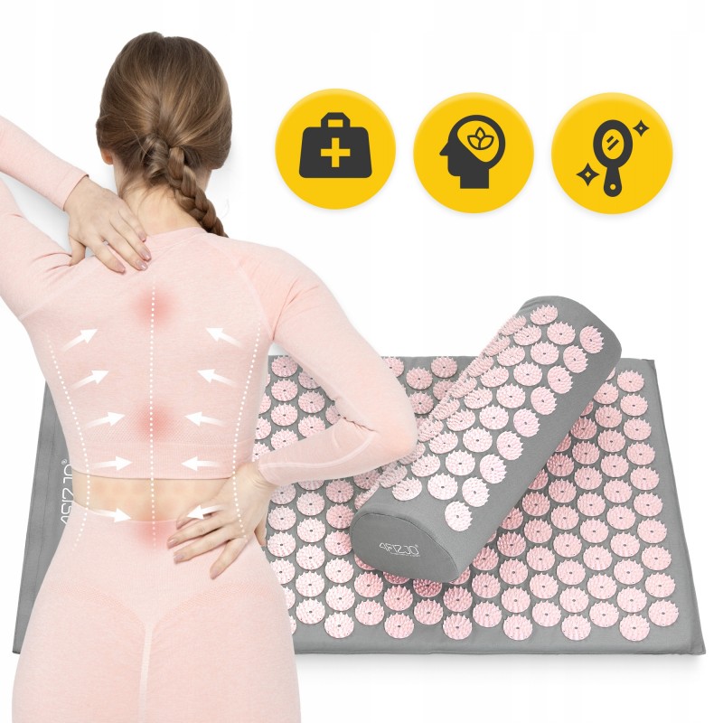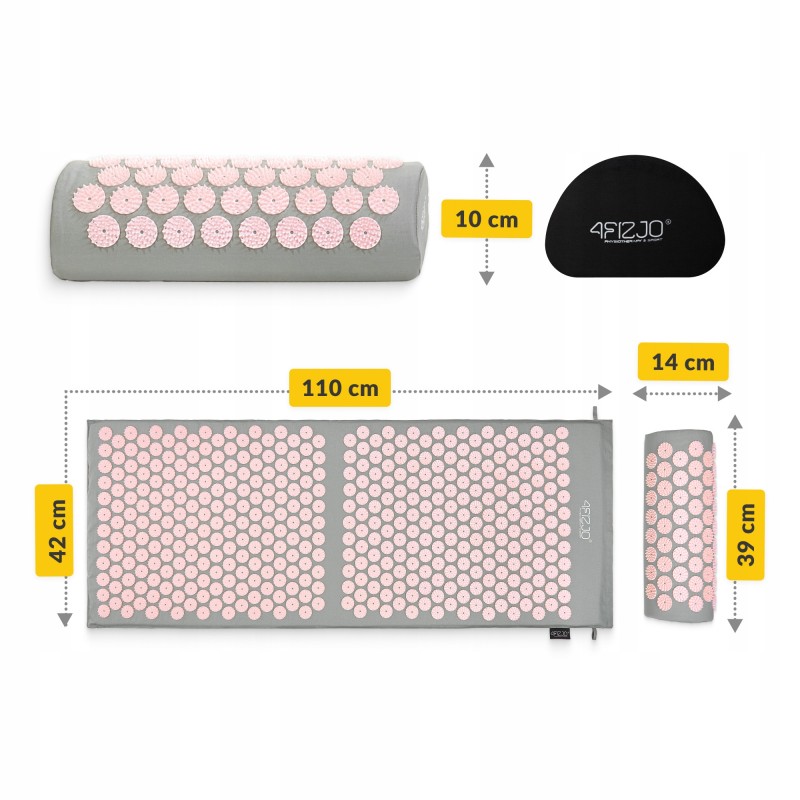 Масажний килимок з валиком від польського бренду 4Fizjo - це інноваційний продукт, розроблений для забезпечення терапевтичного впливу на різні частини тіла за допомогою акупунктурної техніки. Основна ідея полягає в тому, щоб стимулювати активні точки на шкірі, це покращує кровообіг та розслабляє нервову систему.