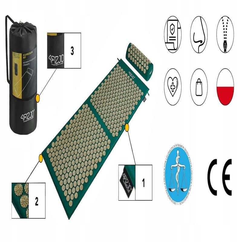 Килимок акупунктурний з валиком 4Fizjo Аплікатор Кузнєцова 1280x480 мм Black/Green, код: P-5907739313317