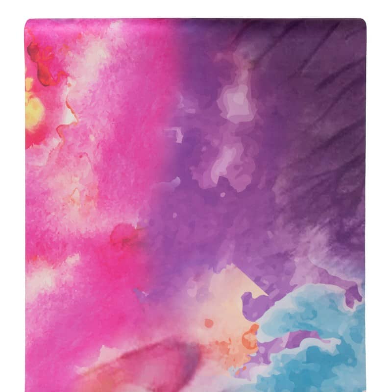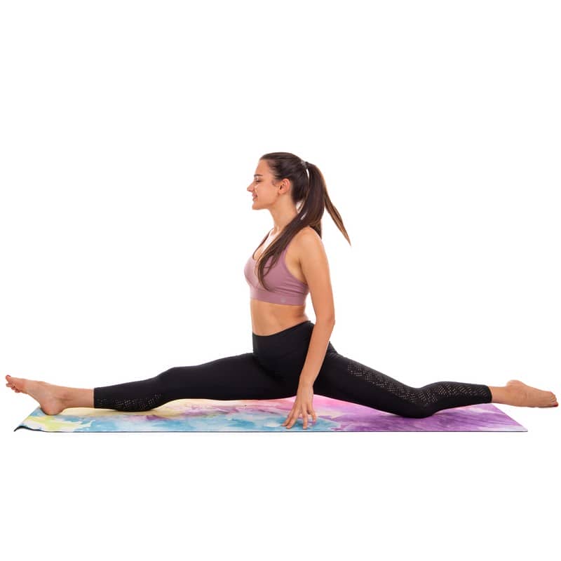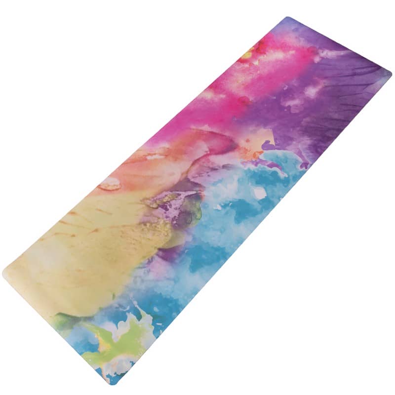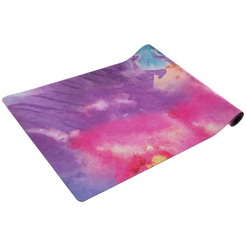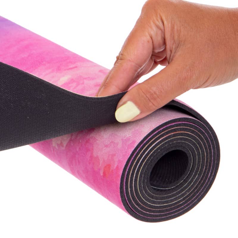 Двошаровий килимок складається з шару каучуку та шару замші. Замшевий верх має цікавий принт, який дає змогу не тільки комфортно тренуватися, а й отримувати естетичне задоволення від занять. Лицьова поверхня килимка не слизька. Відмінною липкістю володіє тильна сторона, виготовлена з каучуку. Цей матеріал добре прилипає до різних покриттів і точно не буде ковзати.