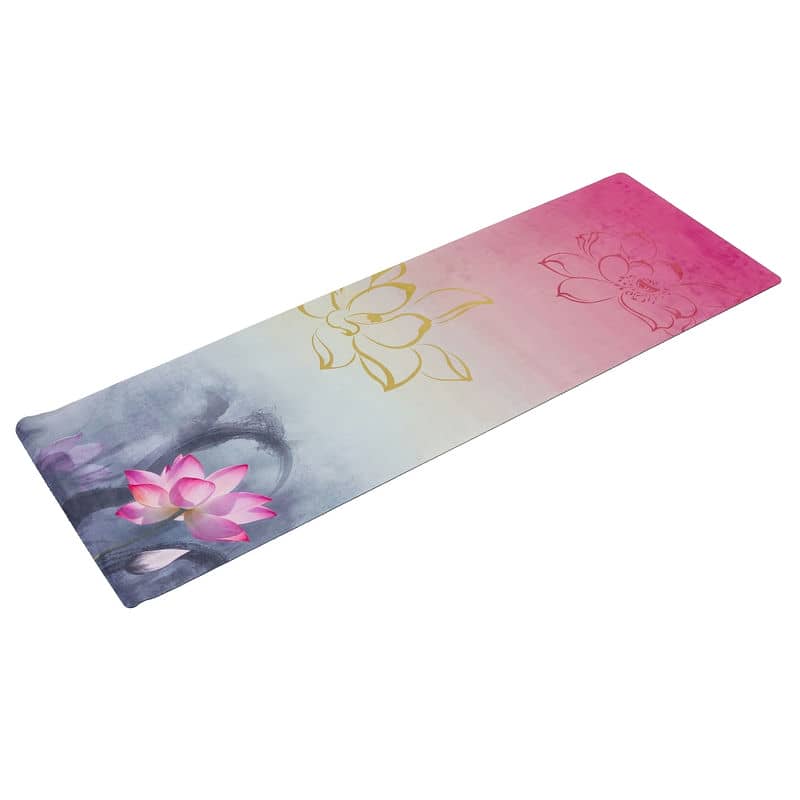 Двошаровий килимок складається з шару каучуку та шару замші. Замшевий верх має цікавий принт, який дає змогу не тільки комфортно тренуватися, а й отримувати естетичне задоволення від занять. Лицьова поверхня килимка не слизька. Відмінною липкістю володіє тильна сторона, виготовлена з каучуку. Цей матеріал добре прилипає до різних покриттів і точно не буде ковзати.