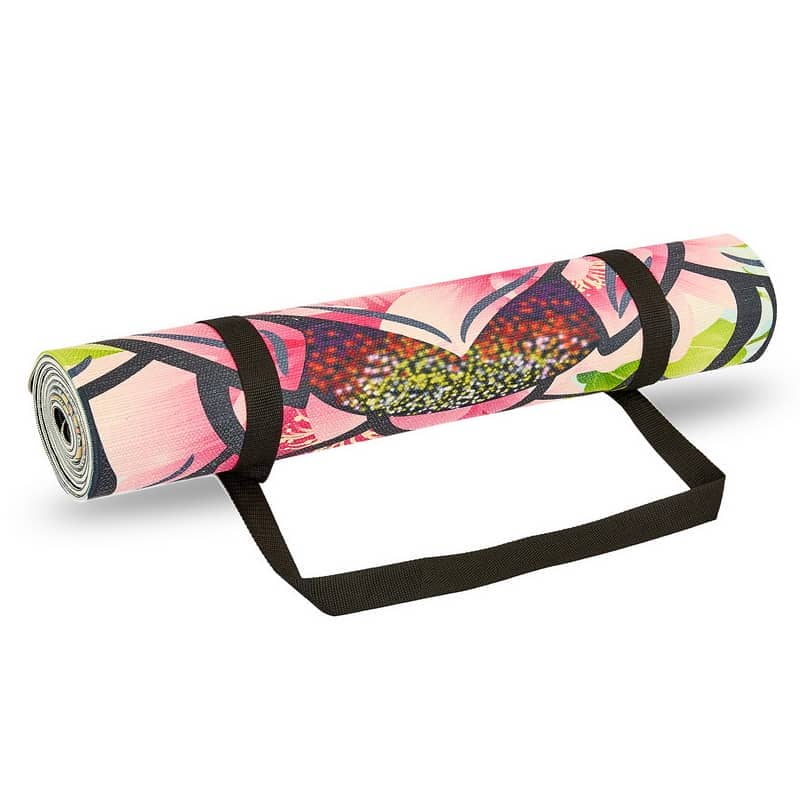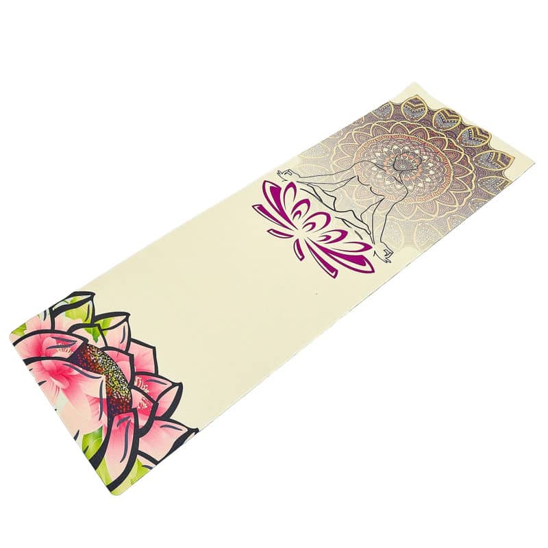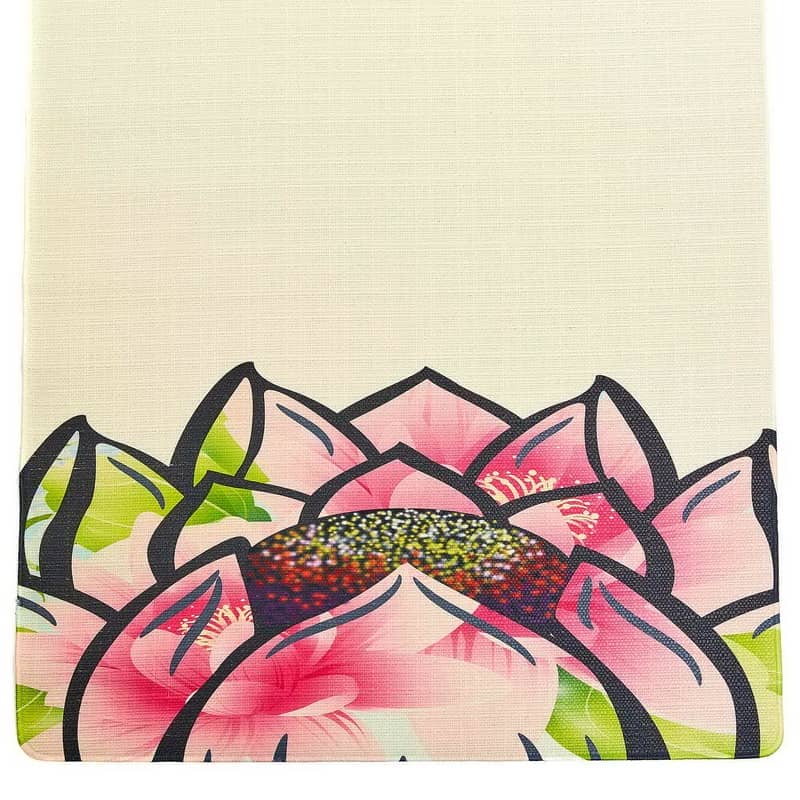 Лицьова сторона виготовлена з льону. Натуральний матеріал дуже приємний на дотик і забезпечує комфорт під час виконання вправ. На килимку є малюнок.