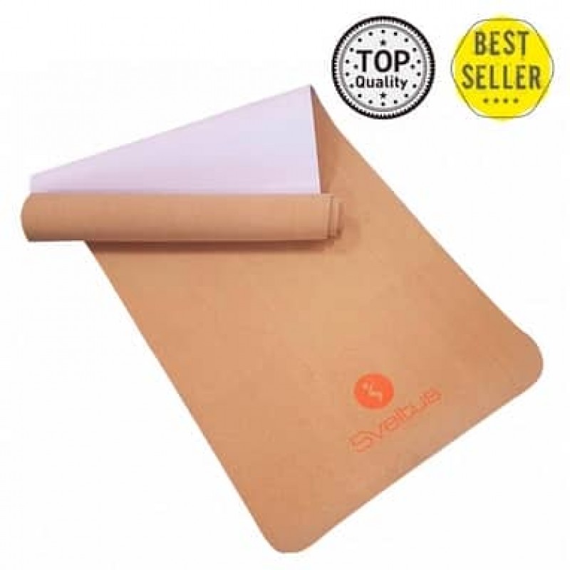 Високоякісний килимок для йоги (йога-мат) двосторонній пробковий від французького бренду Sveltus, 183х61х0,4 см.