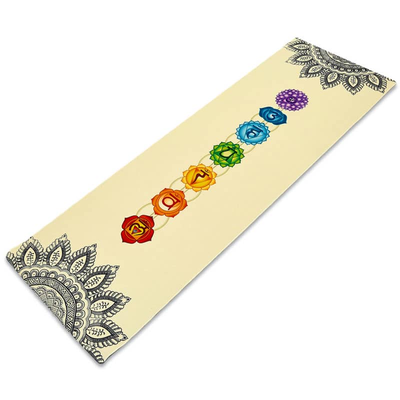 Килимок для йоги льняний Record принт мандала Чакри 1830x610x3 мм, бежевий, код: FI-7157-1-S52