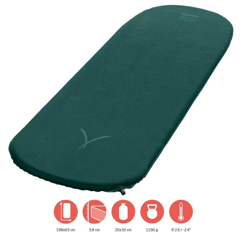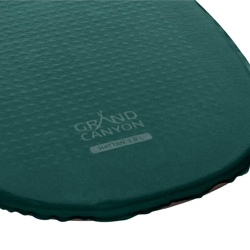 Самонадувний килимок Grand Canyon Hattan 3.8 L - це подовжена версія, що дозволяє комфортно розмістить користувачам із зростом до 2 метрів, та забезпечує належні термоізоляційні властивості при температурі до -2.4°С. При цьому модель є досить компактною та легкою, як для самонадувного килимка. Верхня оболонка Hattan 3.8 L має м’яку на дотик текстильну поверхню, нижня сторона мінімізує ковзання на гладкій підлозі намету. Простий у використанні гвинтовий клапан забезпечує швидке самонадування та дає можливість подальшого надування та швидкого здування після використання.