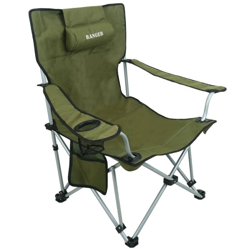 Розкладне крісло-шезлонг Ranger Stream займає дуже мало місця в складеному стані, тому вирушаючи на риболовлю чи на природу, не забудьте взяти його з собою. Спеціальні ніжки не дають крісла провалюватися під навантаженням людини в грунт. У крісла зручні підлокітники з підсклянником для чашок так, що улюблений напій завжди буде під рукою. У підголівнику розташована додатково подушка на липучці, для забезпечення більшого комфорту. Крісло без зайвих зусиль трансформується в шезлонг і зможете насолоджуватися відпочинком, або позасмагати на пляжі. Для нахилу немає необхідності вставати з крісла Stream, досить опустити підлокітники і спиною натиснути на задню частину сидіння. У нижній частині розташована кишеня для речей, вони завжди будуть у вас під рукою. Крісло легко складається до компактних розмірів в чохол з плечовим ременем для зручності перенесення. Колір крісла відмінно підходить до іншої туристичної екіпіровці і буде добре гармоніювати з фарбами природи. Для великої надійності, додатково посилені ніжки.