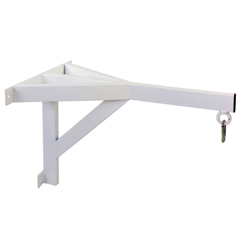 Ключова особливість цієї моделі — посилена монтажна пластина з продуманим дизайном: широка площа кріплення і потужні зварні вузли допомагають розподілити вагу мішка та вібрації на більшу площу стіни. Це суттєво знижує зношування поверхні монтажу та підвищує довговічність усієї конструкції. Крім того, порошкове покриття не лише надає білосніжний естетичний вигляд, а й захищає метал від корозії та дрібних пошкоджень.