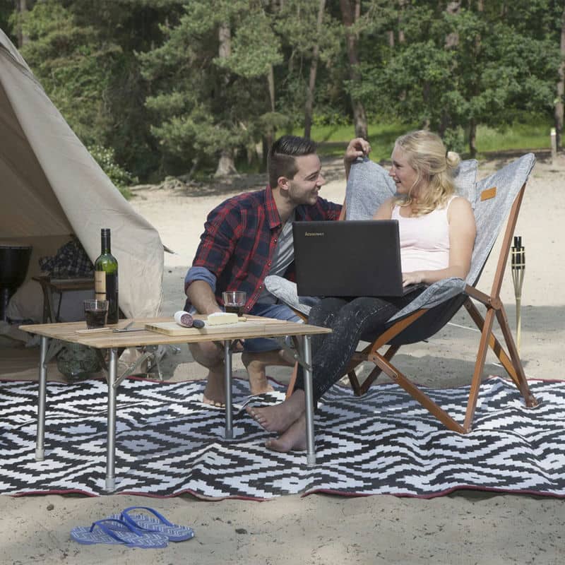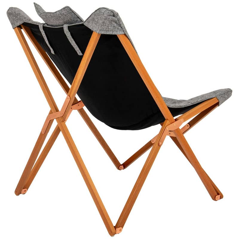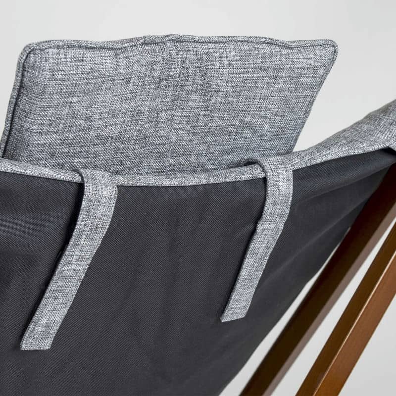 Дерев'яний каркас крісла дуже легкий та швидко, без зусиль розкладається. Він обладнаний пластиковими ніжками, що захищають дерево від вологи і пошкоджень. Крісло досить широке та глибоке для того, щоб забезпечити комфорт користувачам міцної статури. Завдяки елегантному дизайну і якісній приємній на дотик тканині крісло буде чудово виглядати навіть у домашньому інтер'єрі.