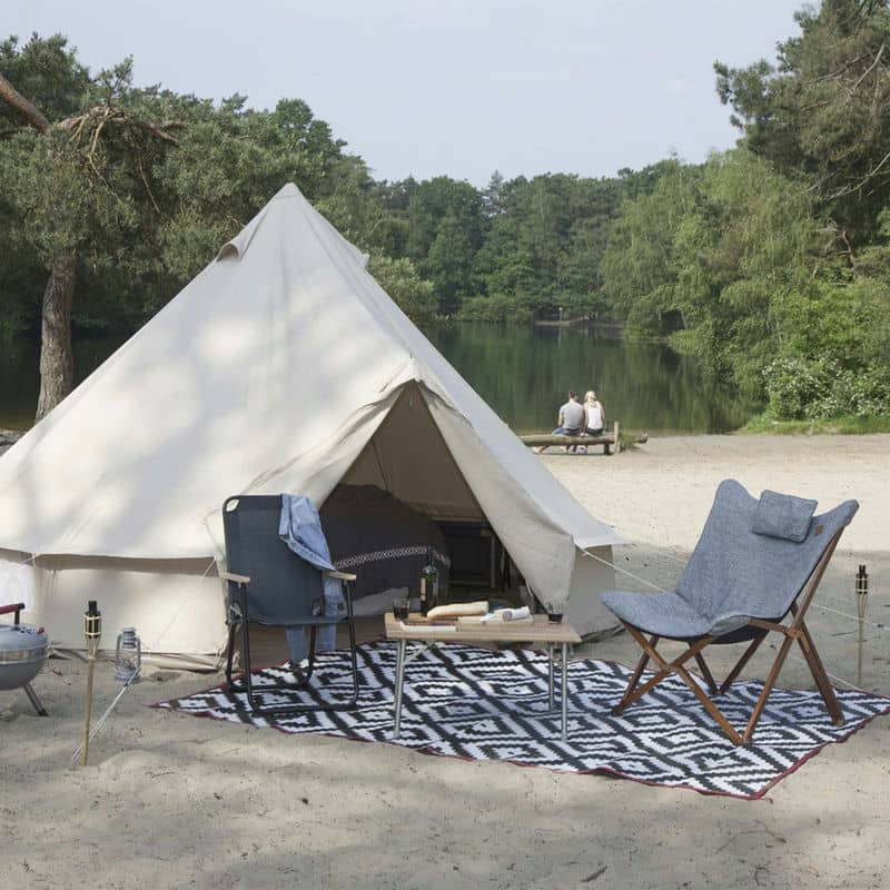 Розкладне крісло Bo-Camp Bloomsbury L має елегантний дерев'яний каркас та призначене для використання на веранді або в саду заміського будинку. Крісло м'яке і комфортне, для зручності відпочинку передбачена подушка під голову, що відкидається. Унікальність конструкції в тому, що текстильна частина крісла легко знімається та одягається на каркас. Завдяки наявності замків на блискавках м'яка підкладка сидіння, спинки та подушки виймається, і текстильна частина крісла може піддаватися чищенню або ручному пранню. Всі механічні з'єднання обладнані полімерними шайбами, що полегшують процес складання-розкладання і збільшують термін служби.