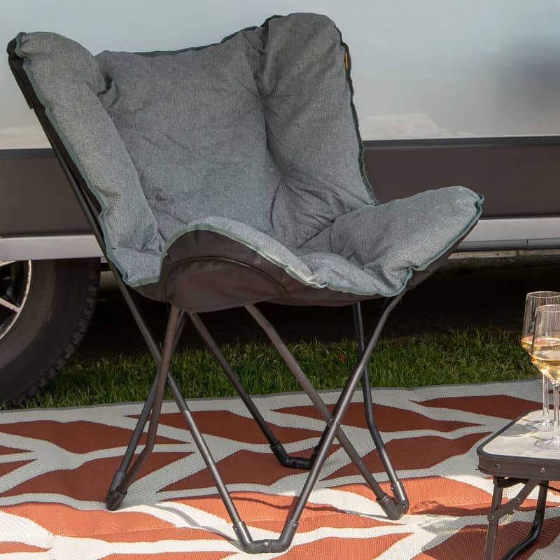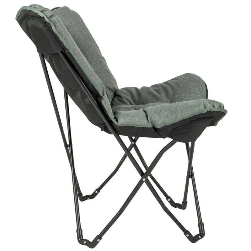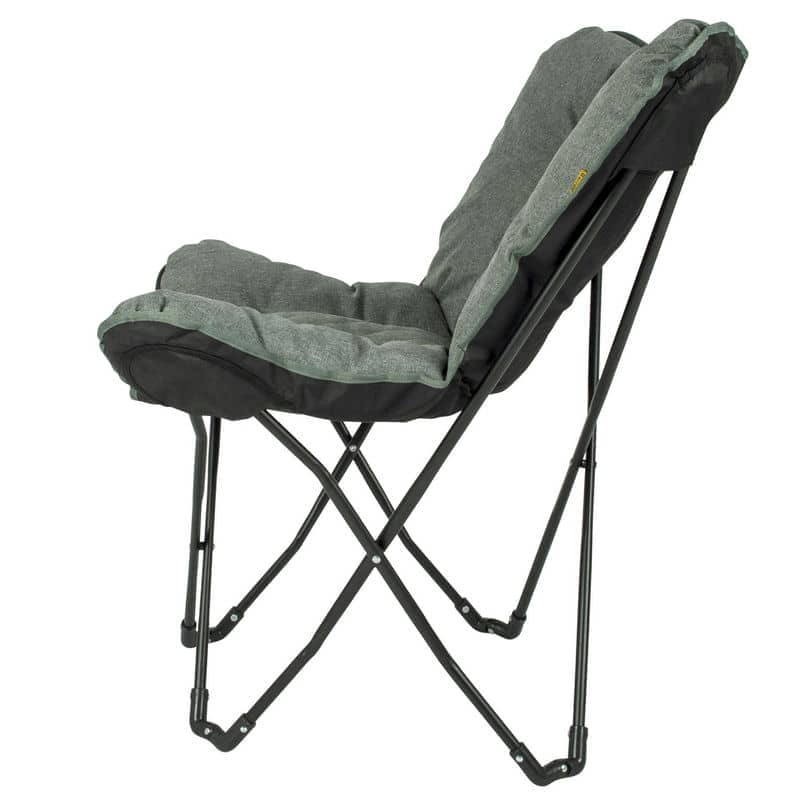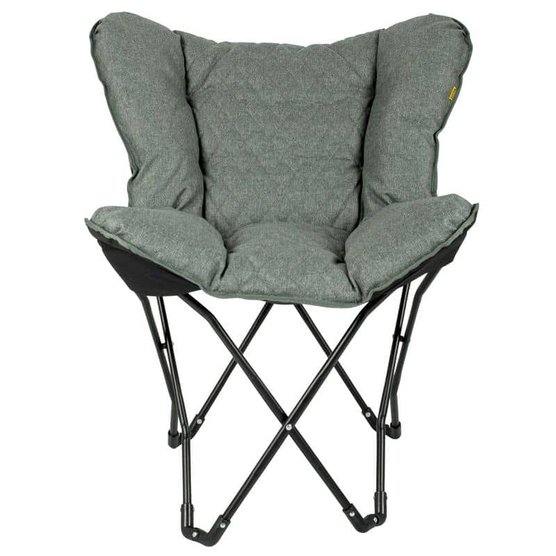 Крісло дуже легке для своїх розмірів, а сталевий каркас легко складається, завдяки чому крісло зручно переносити, в тому числі в чохлі. Крісло обладнане пластиковими ніжками, має елегантний дизайн і якісну, приємну на дотик тканину, тому воно точно не буде пилитись в кутку до наступної поїздки на природу. Адже ця модель також чудово виглядає в домашньому інтер'єрі.