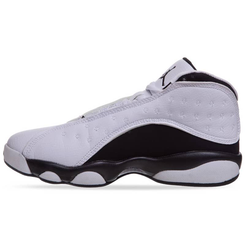 • Сучасний дизайн — поєднання білого з металевими акцентами, футуристична підошва та фірмовий шеврон JDAN створюють стиль професійного гравця.
