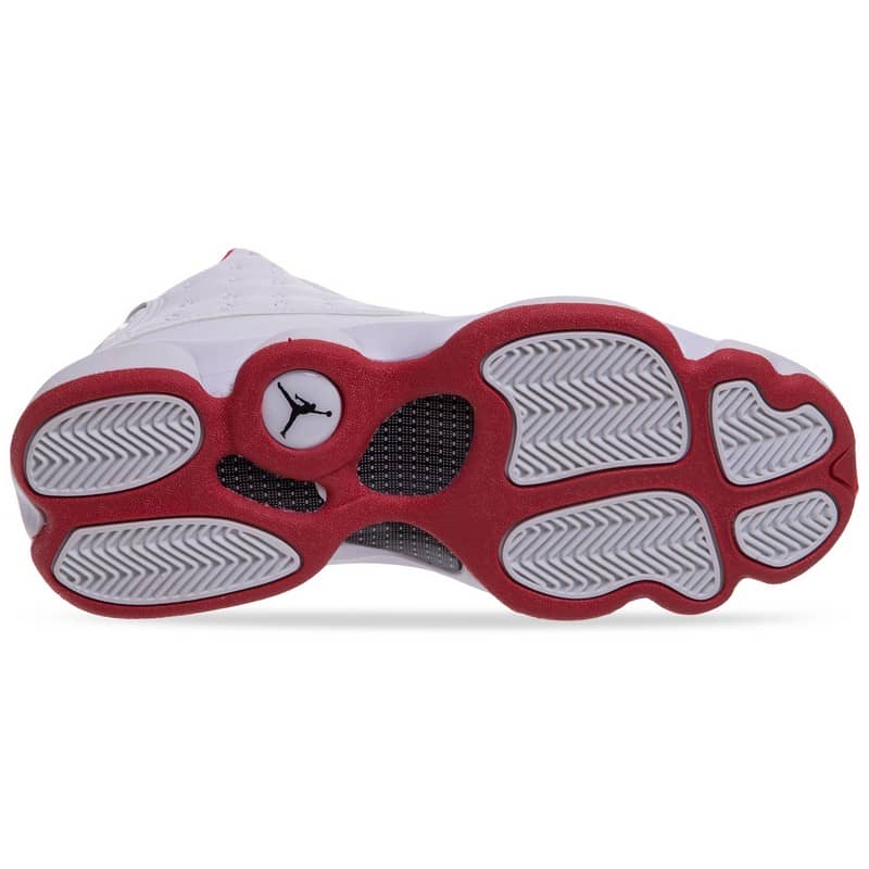 • Сучасний дизайн — поєднання білого з металевими акцентами, футуристична підошва та фірмовий шеврон JDAN створюють стиль професійного гравця.